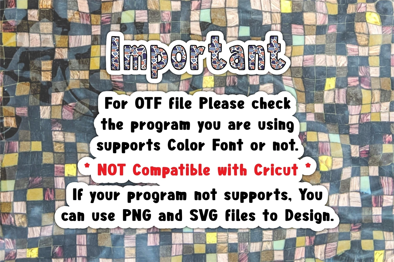 Mosaic Color is a cute and funny font. This font is perfect for a design that requires a fun accent. Is suitable for book covers, posters, packaging, merchandise, logotype, and much more.