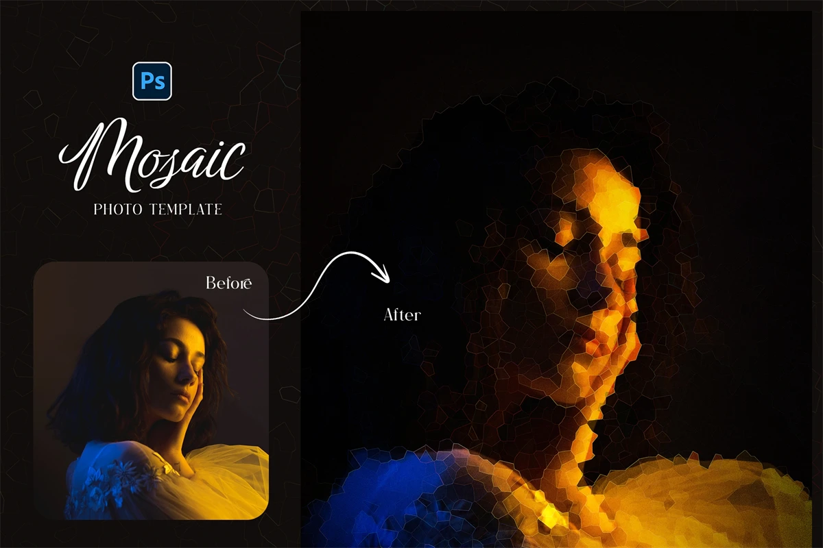 Easy to use template via smart object replacement. Creative mosaic effect for your photos. Get cool and stylish photos from your regular photos! Impress all the world with your creativity)