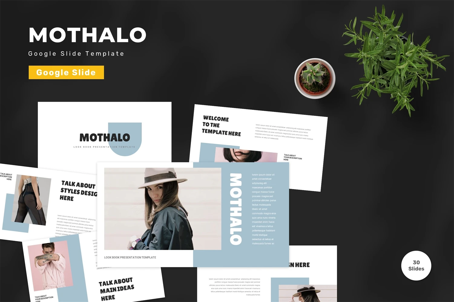 Get it now! **Mothalo - Google Slide Template** for All Business and Personal Needs All elements on this template are editable; input your content, replace your image with a placeholder, change the color, and all presentations include an animated slide to present your slides.