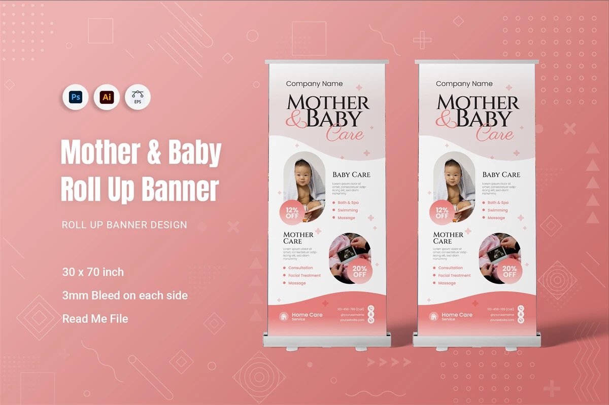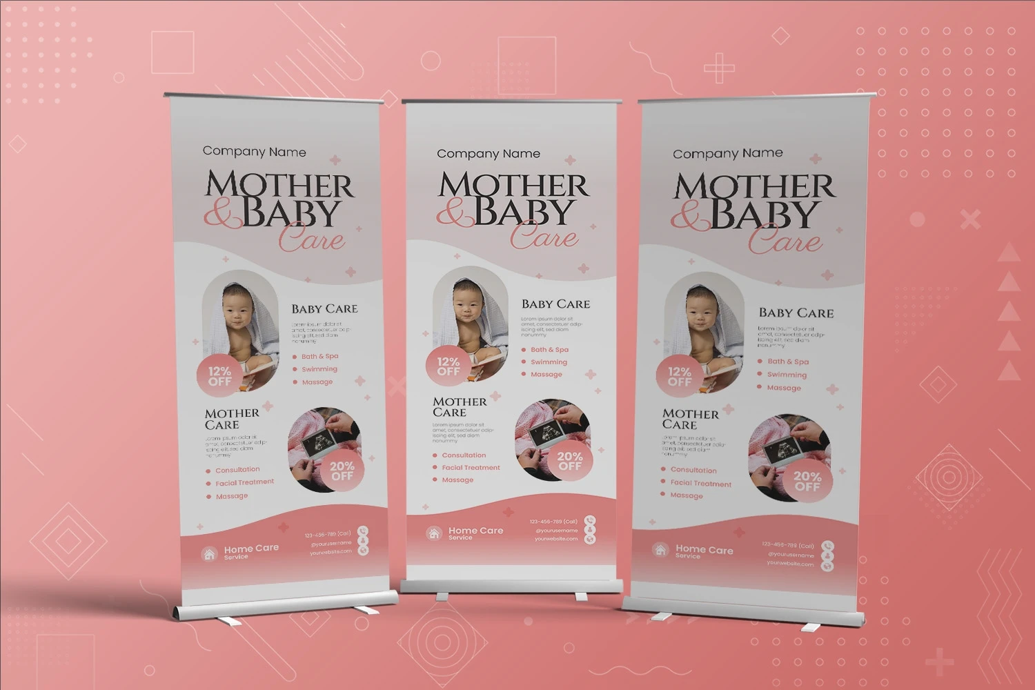 Instantly communicate your brand's through our roll-up banner template. Its standout design is optimized for the impactful presentation of visuals and content alike.