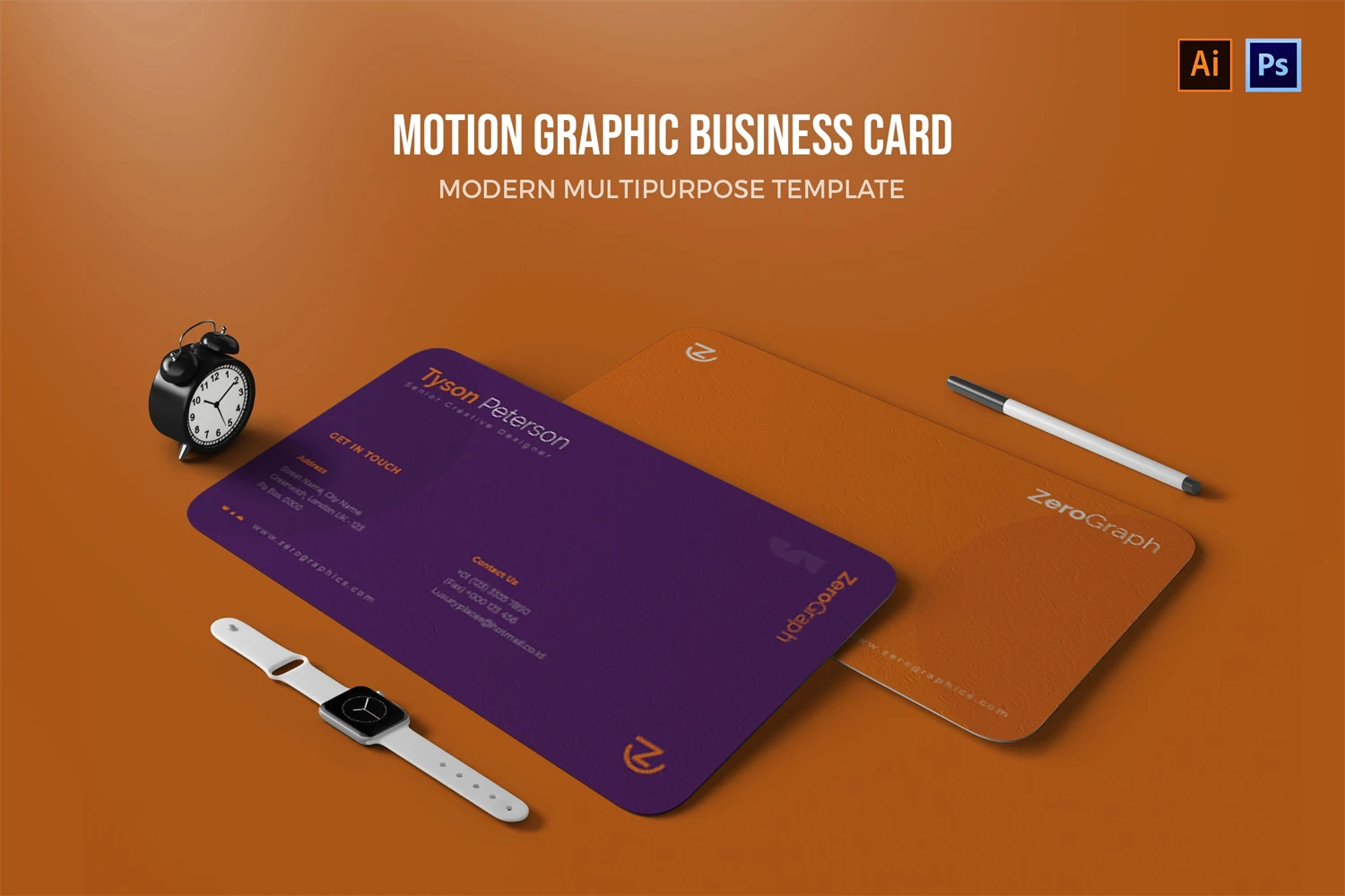 This Motion Graphic- Business Card make your business cards look professional. You can use this business card for, identity, company business cards, Corporate Business, Creative, Blogs, Photographers, Artists, Designers, etc.