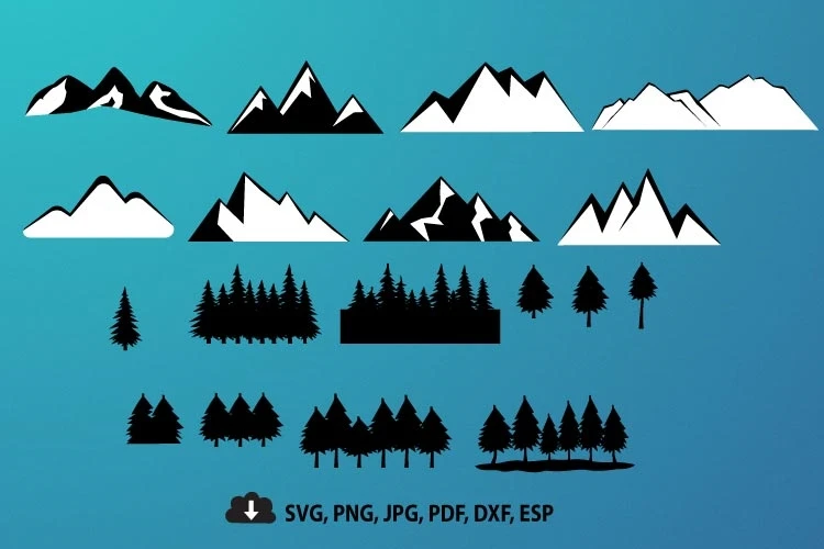 Mountain and Forest Svg, Pine Trees Svg, Mountain Clipart, Mountains Svg, Mountains Bundle, Outdoors, Camping Silhouette, Cut file, Cricut