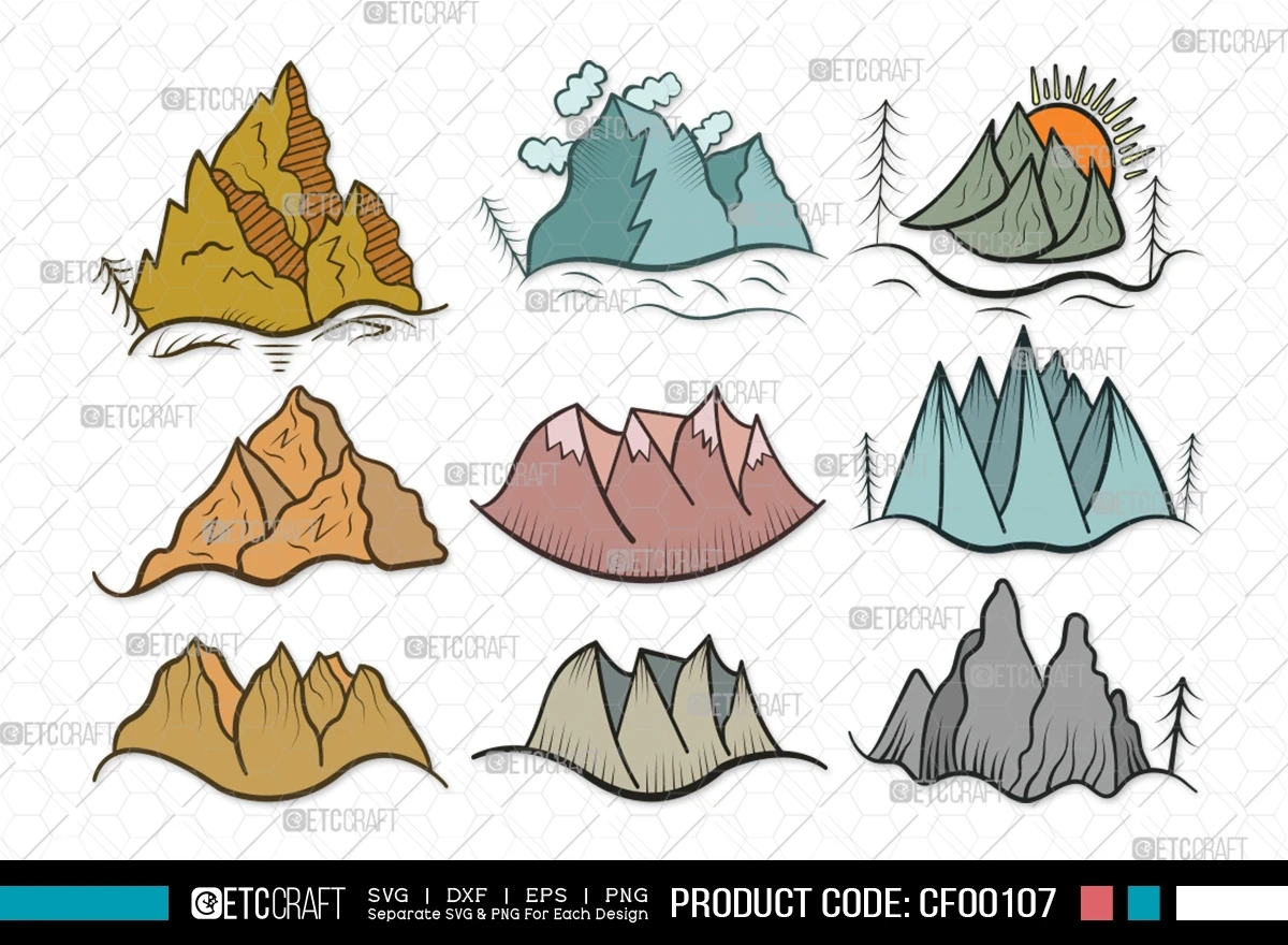 Embark on a creative journey with our Mountain Clipart Hill Hiking SVG Cut File Bundle—a delightful collection designed to infuse your projects with the rugged beauty of nature. This bundle is a treasure trove of detailed mountain, pine tree, hill, and rock clipart in SVG format, perfect for crafting enthusiasts and outdoor adventure lovers alike.