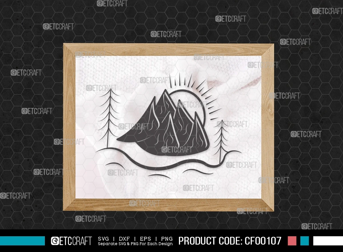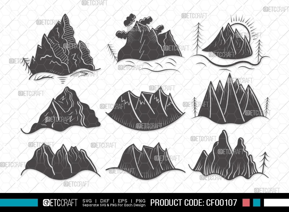 Explore the wild beauty of nature with our Mountain Silhouette Hill Hiking SVG Cut File Bundle—a collection designed to bring the adventurous spirit of hiking to your crafting projects. This bundle showcases finely crafted silhouette designs of mountains, trees, hills, and rocks in SVG format, tailored for individuals passionate about outdoor escapades.