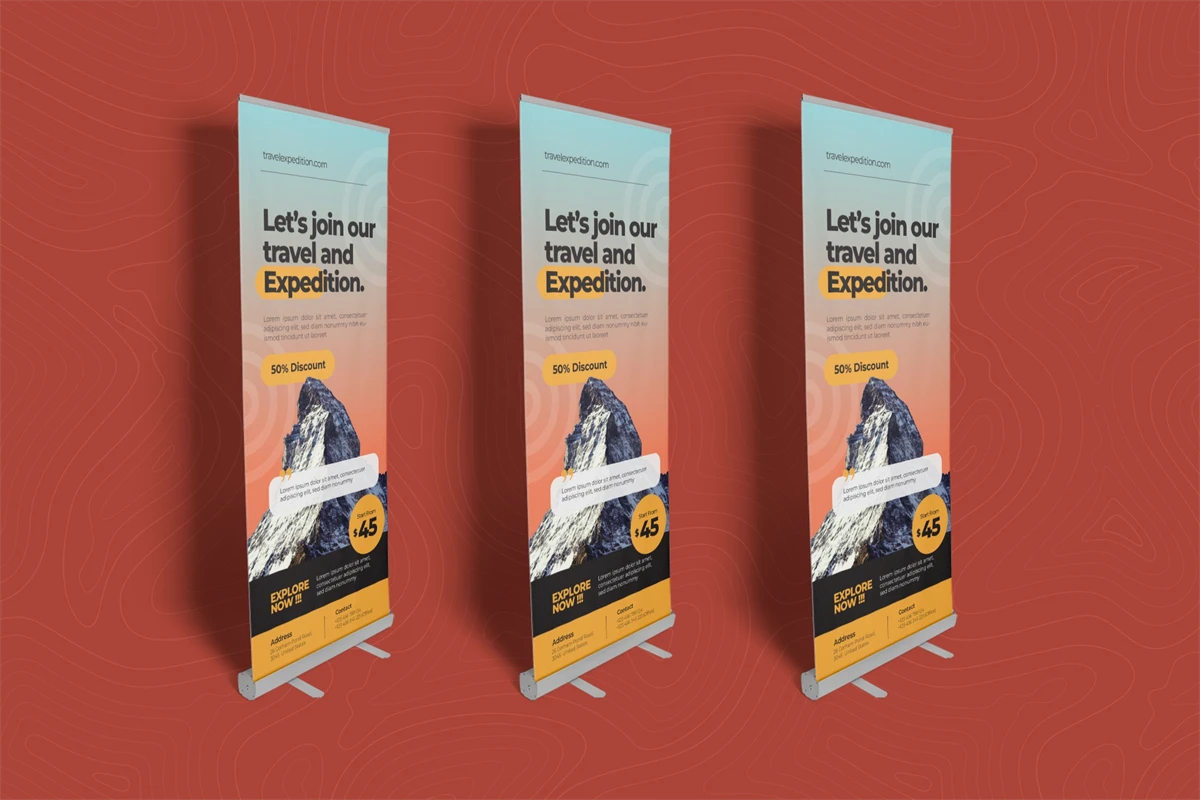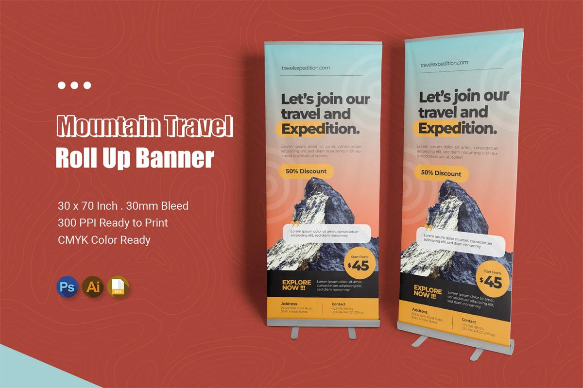 **Mountain Travel Roll Up Banner**