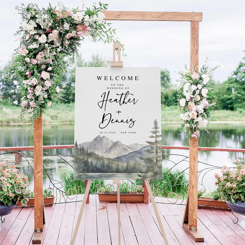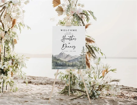 Mountain Welcome Sign, Lake, Printable Wedding Rustic,Canva