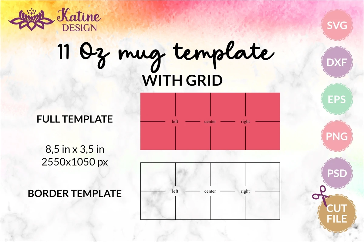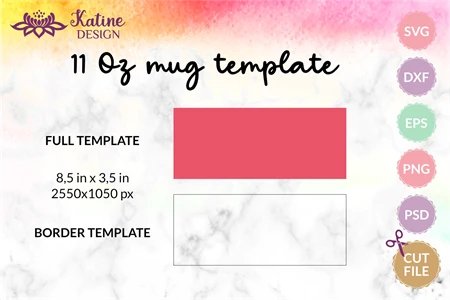 11 Oz Mug: grid, full and border templates in size (8,5 in x 3,5 in):