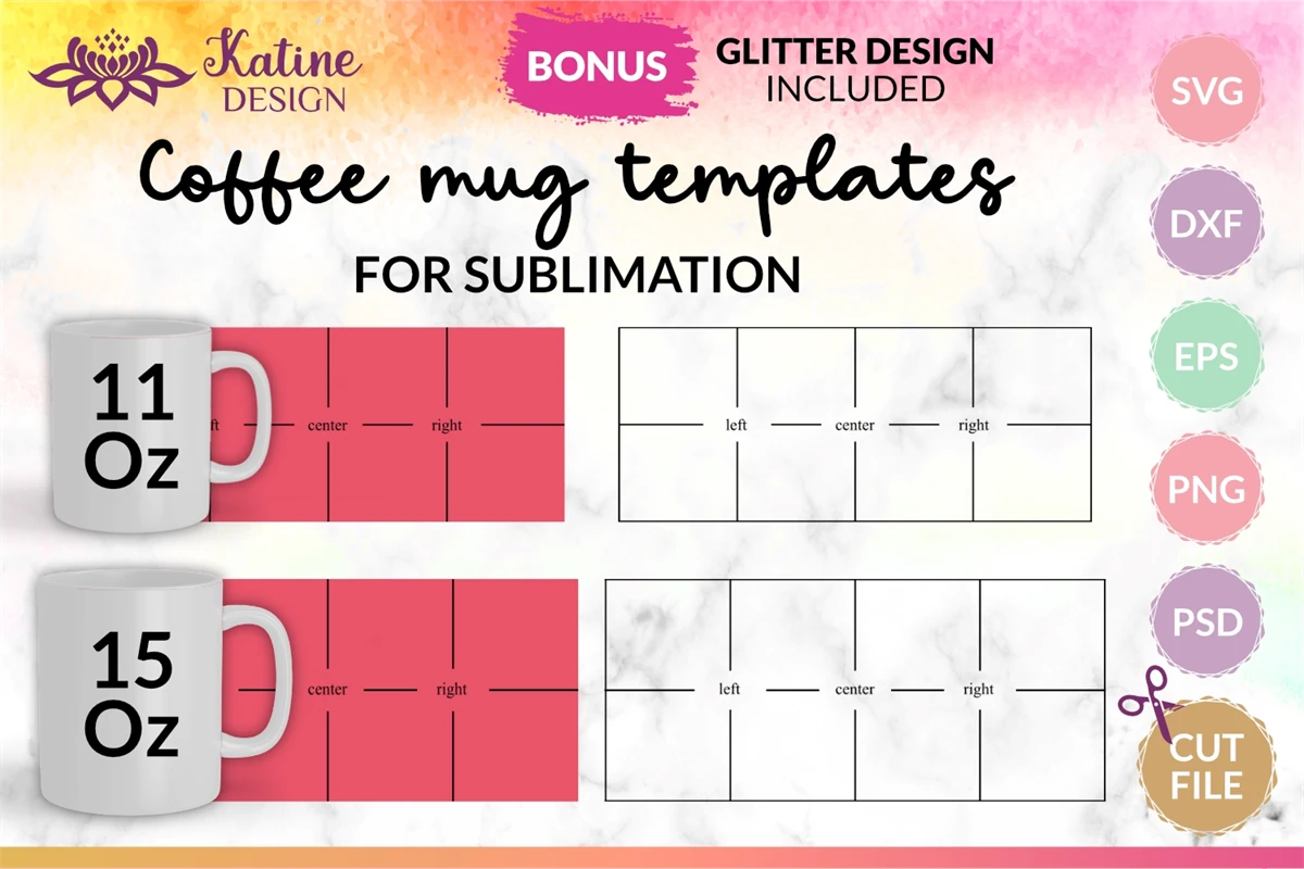 Please note this is digital file (instant download) - Mug Template For Sublimation 11 Oz 15 Oz