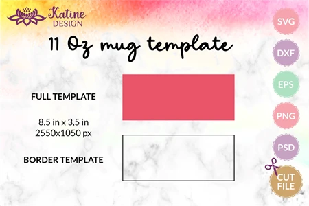 11 Oz Mugs full and border templates in size (8,5 in x 3,5 in):