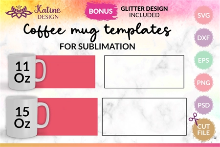 Mug Template Design 11 Oz 15 Oz Sublimation Wrap Bundle Psd. SVG, EPS, PNG, DXF, PSD for Sumblimation and Cutting Machines.