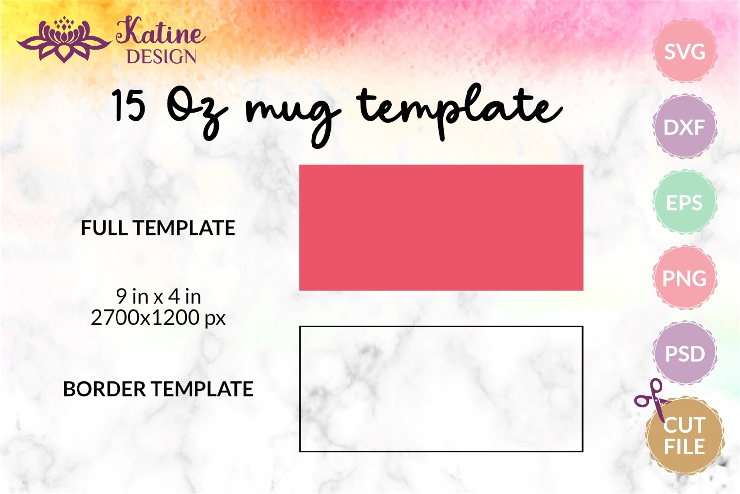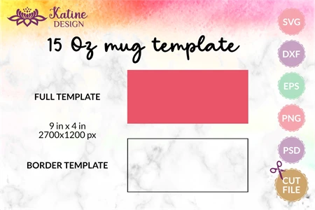 15 Oz Mugs full and border templates in size (9 in x 4 in):