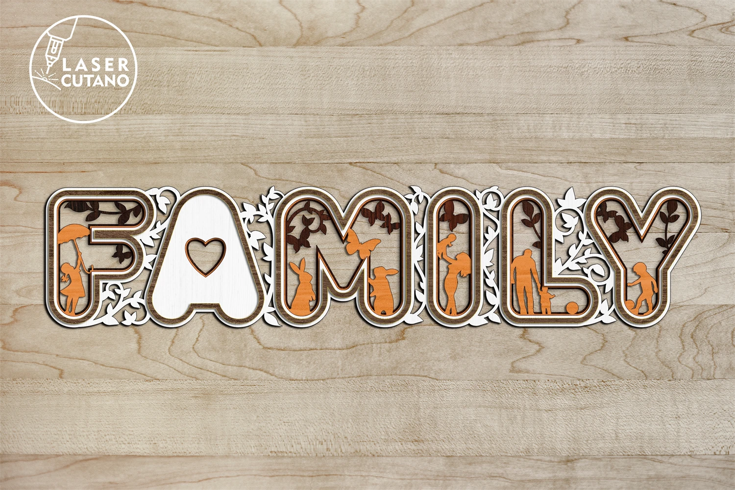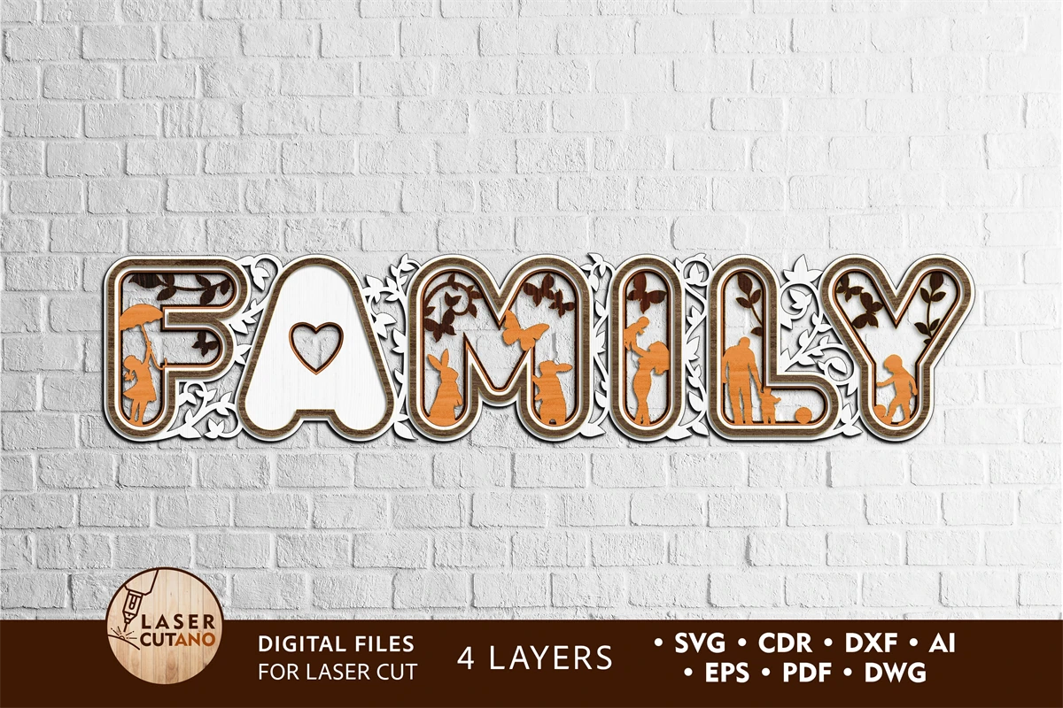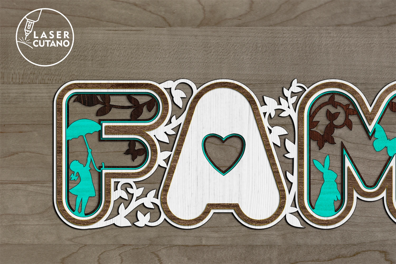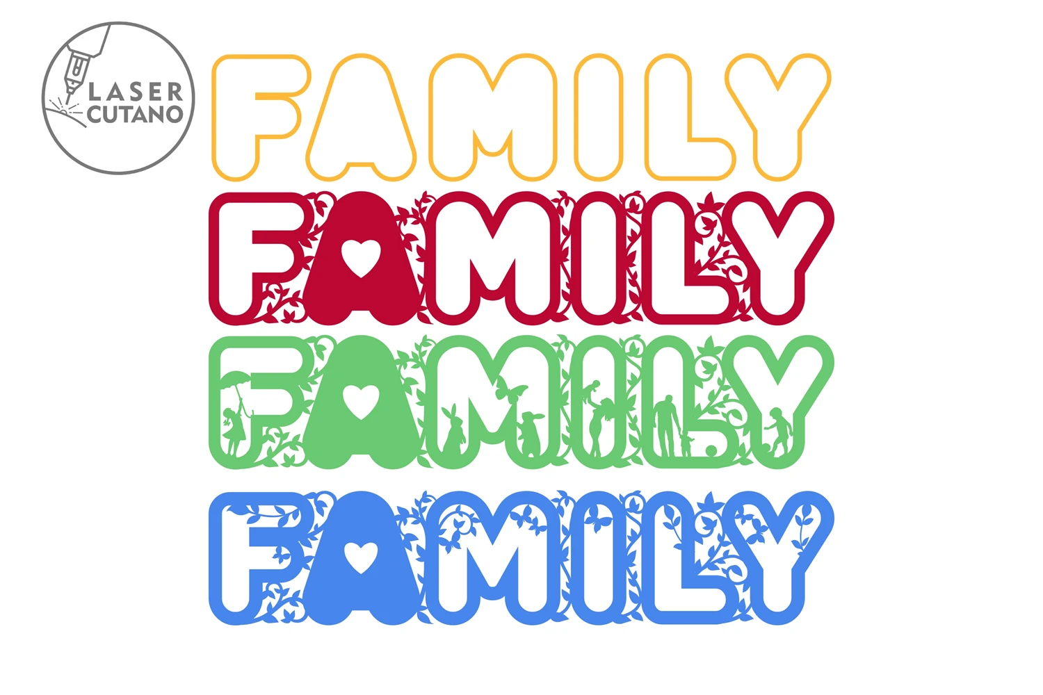 Multilayer lettering FAMILY files are specially prepared for the laser cut, CNC router machine and other cutting machines.