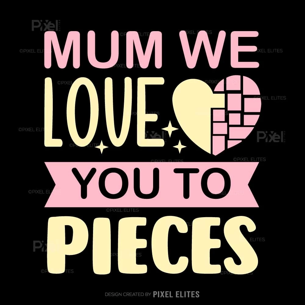 Show your love and appreciation for your mom with our Mum We Love You to Pieces SVG Mother's Day Gift Mom Design. This charming design perfectly conveys your heartfelt emotions, making it an ideal choice for Mothers Day gifts.