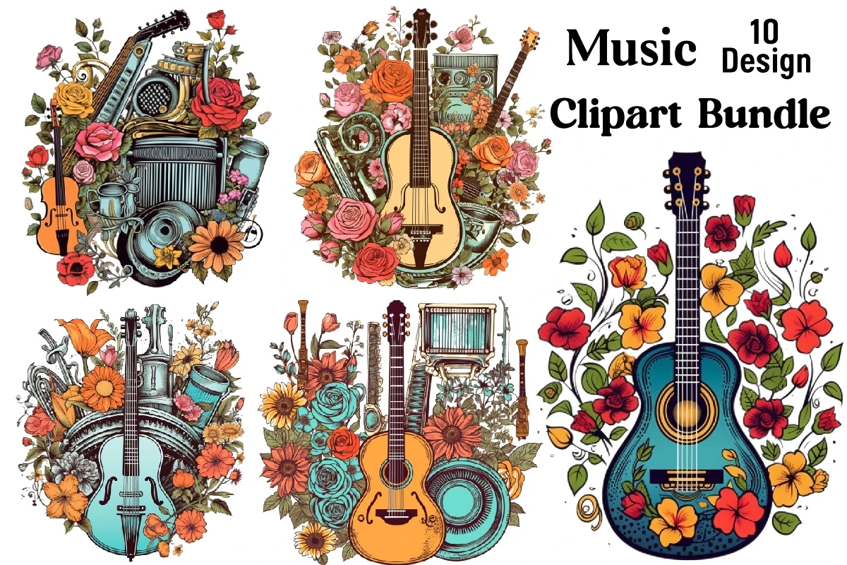 Watercolor Music Clipart PNG Bundle