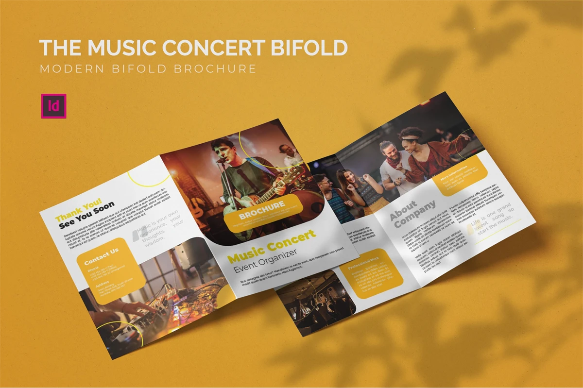 Music Concert - Bifold Brochure We present this Bifold Brochure for you, simple and very elegant, and this Bifold Brochure is suitable for all types of your business, made with adobe inDesign, very easy to customize, Hope you Like it, dont forget to rate, Thanks.