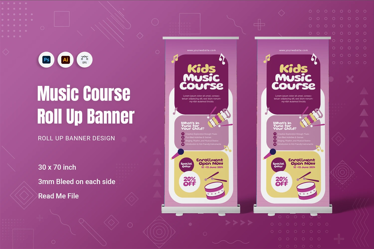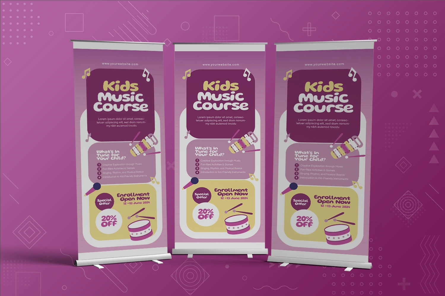 Instantly communicate your brand's through our roll-up banner template. Its standout design is optimized for the impactful presentation of visuals and content alike.