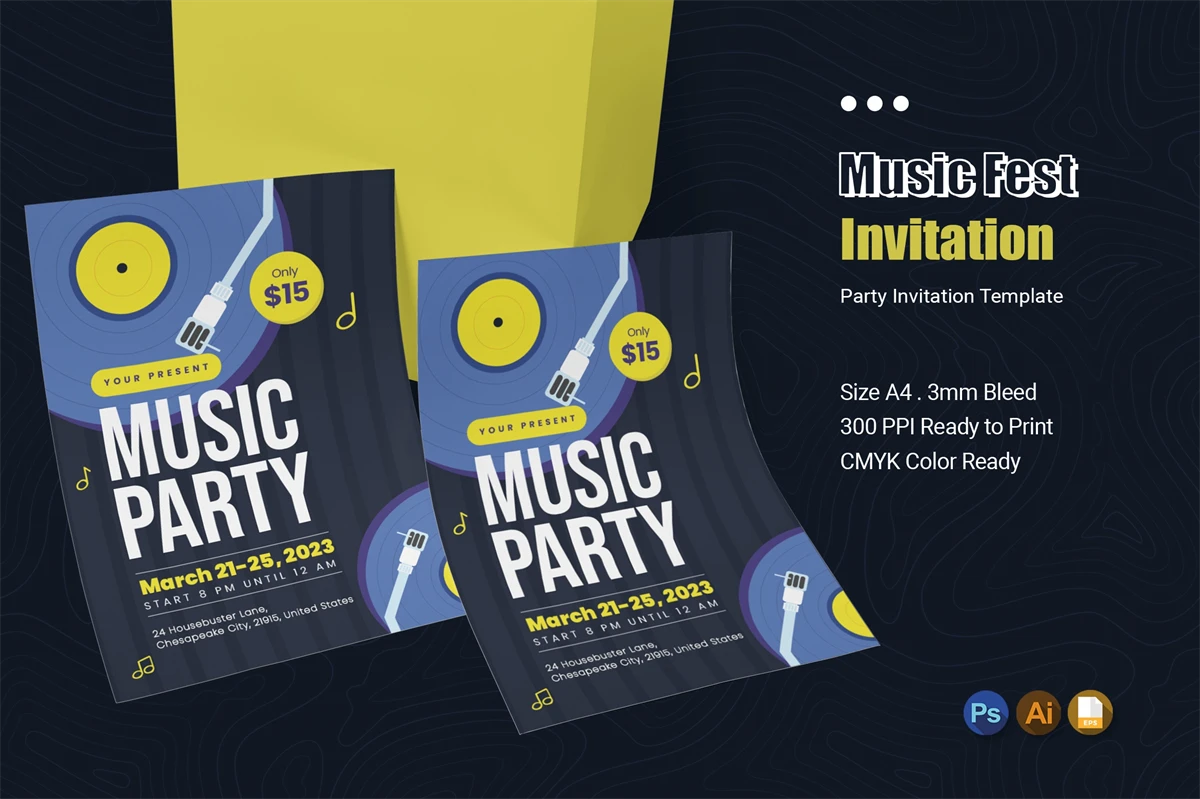 Of course you want to invite friends to your Party Invitation with the best invitations! Impress the invited guests with your style of invitation, by using this invitation card template. You can easily edit & customize each of the designs because every component is well organized and editable.