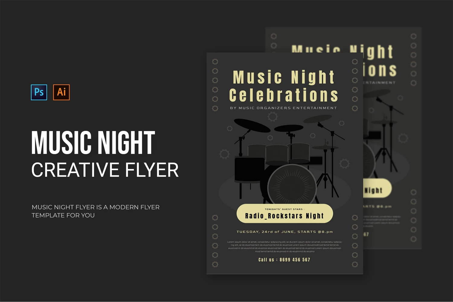 Music Night - Flyer. This Flyer template is designed for your company's business needs. very clean and elegant, and also easily edited and adjusted to your liking