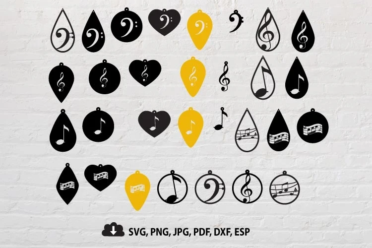 Music Earring Svg, Music Note Earring Svg, Treble Clef Earrings Clipart, Music Earring Bundle, Earring Leather Template Laser Cut, Cricut