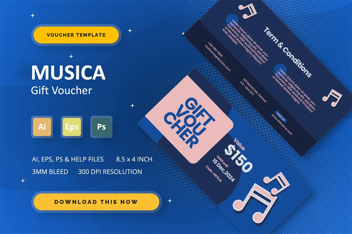 Discount vouchers and gift cards. A creative and sleek flyer, suitable for both personal and corporate purposes. It's perfect for any company project, and you can effortlessly customize this voucher template to your liking, as it offers complete flexibility in editing.