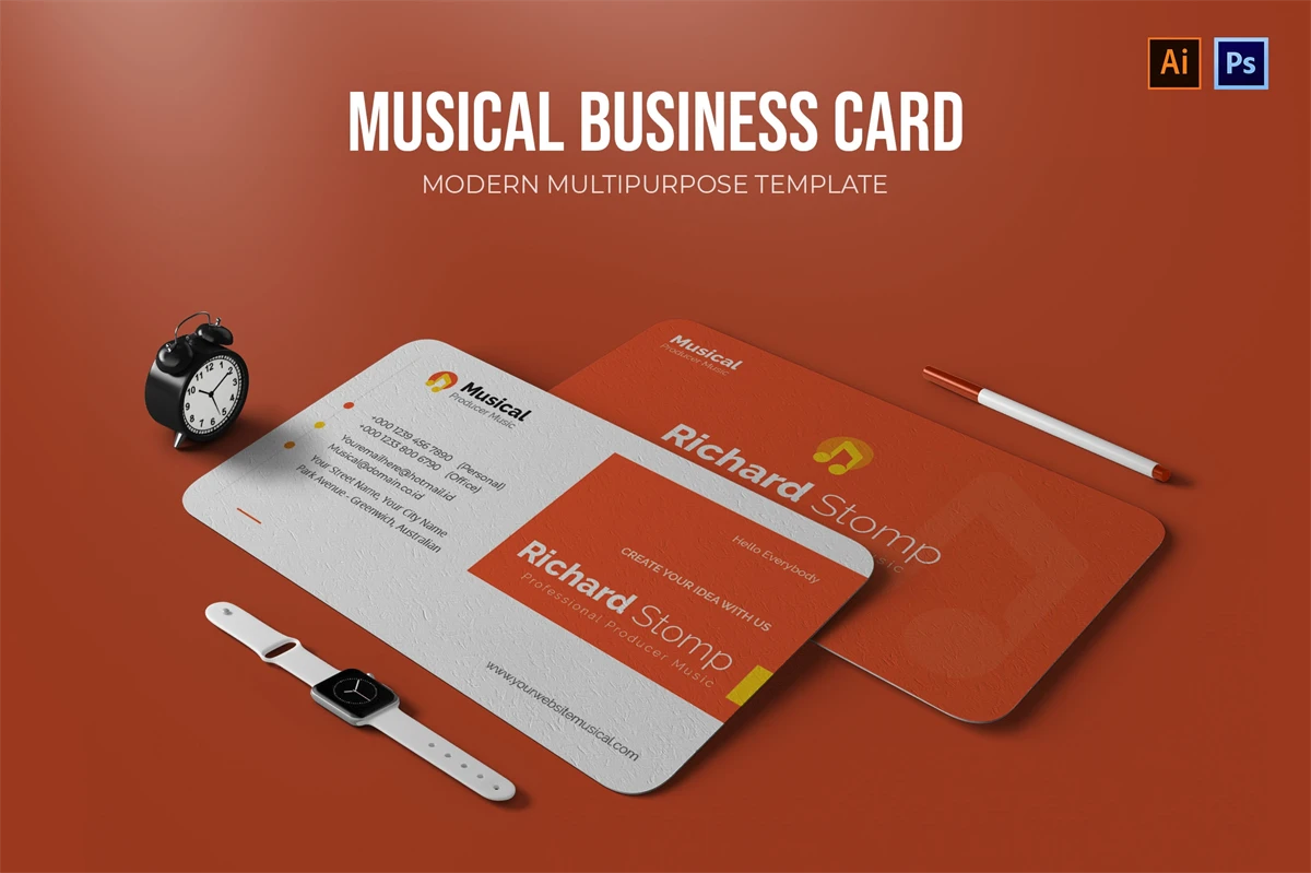 This Musical - Business Card make your business cards look professional. You can use this business card for, identity, company business cards, Corporate Business, Creative, Blogs, Photographers, Artists, Designers, etc.