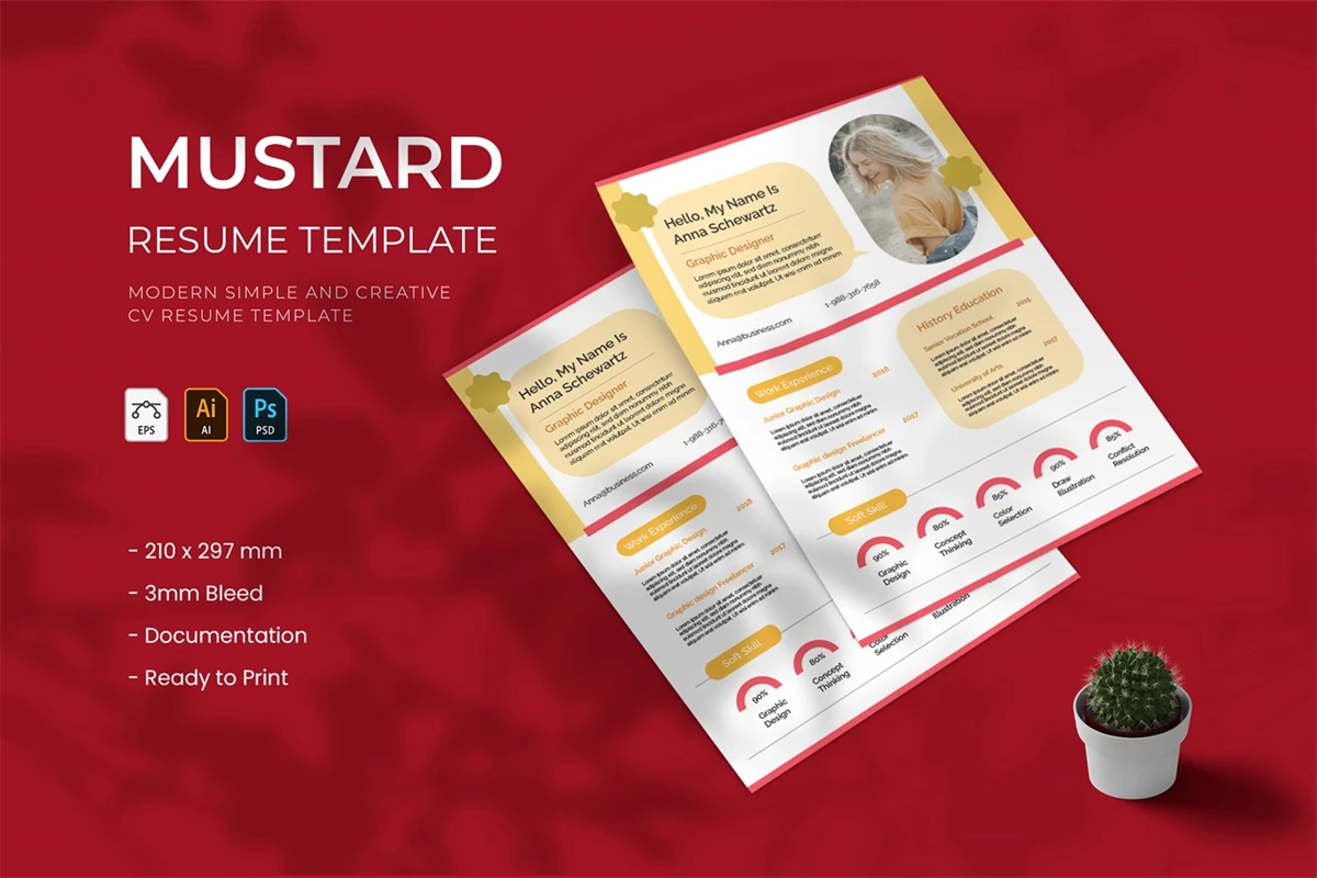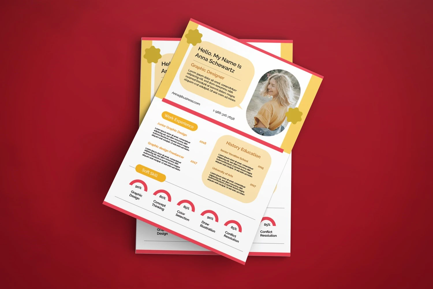 creative resume and cover letter template that will make your resume stand out from the hundreds of resumes employers get. It gives you the information you need, such as your name, contact information, social media links, education, experience, skills and interests. Also, it comes with three different color schemes.