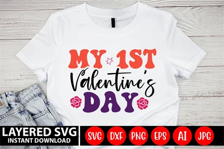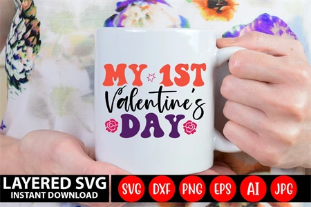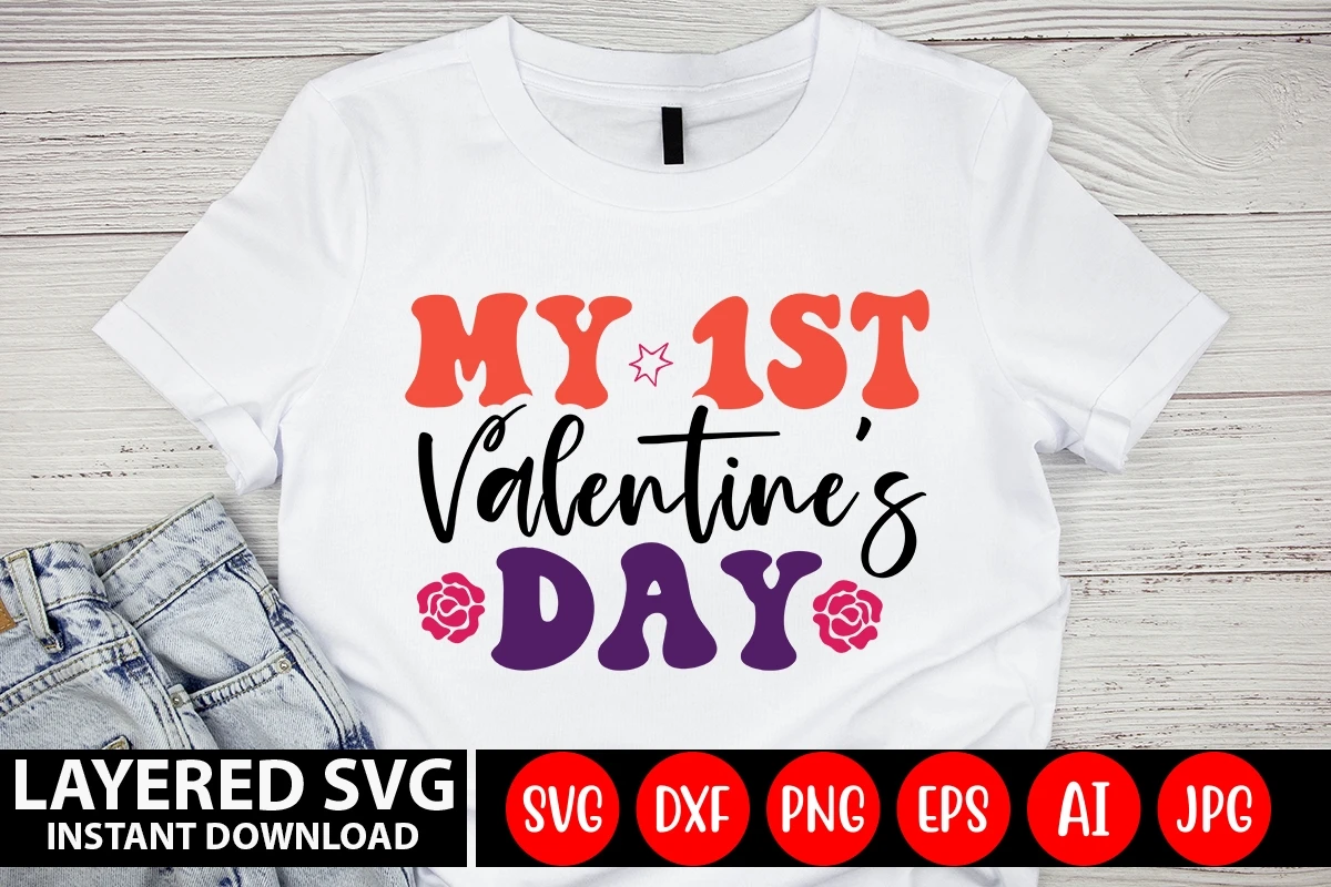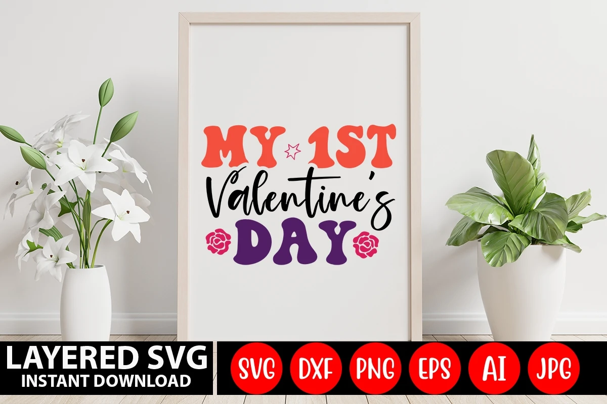 My 1st Valentines Day Retro SVG Design, SVG Cut File