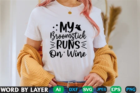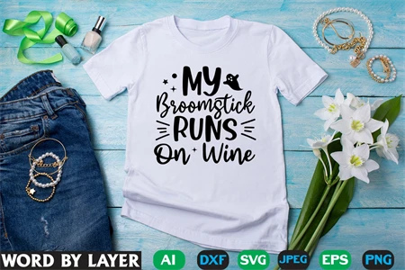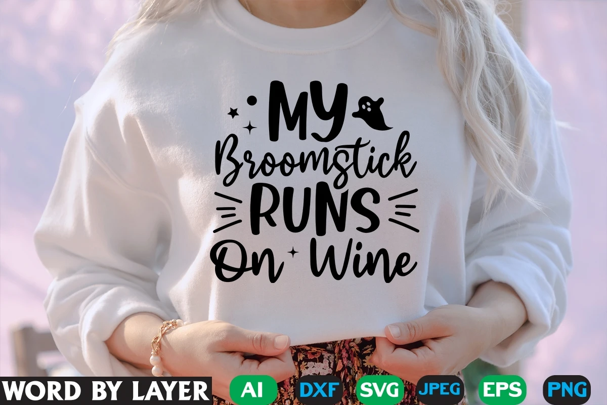 My Broomstick Runs On Wine SVG Design, SVG Cut File