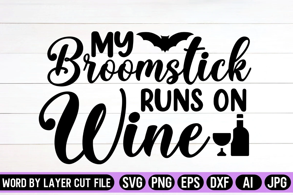 My Broomstick Runs On Wine SVG Design