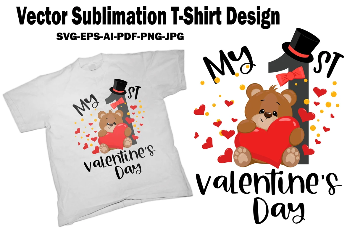 My First Valentines Day Vector Sublimation T-Shirt Design for boys