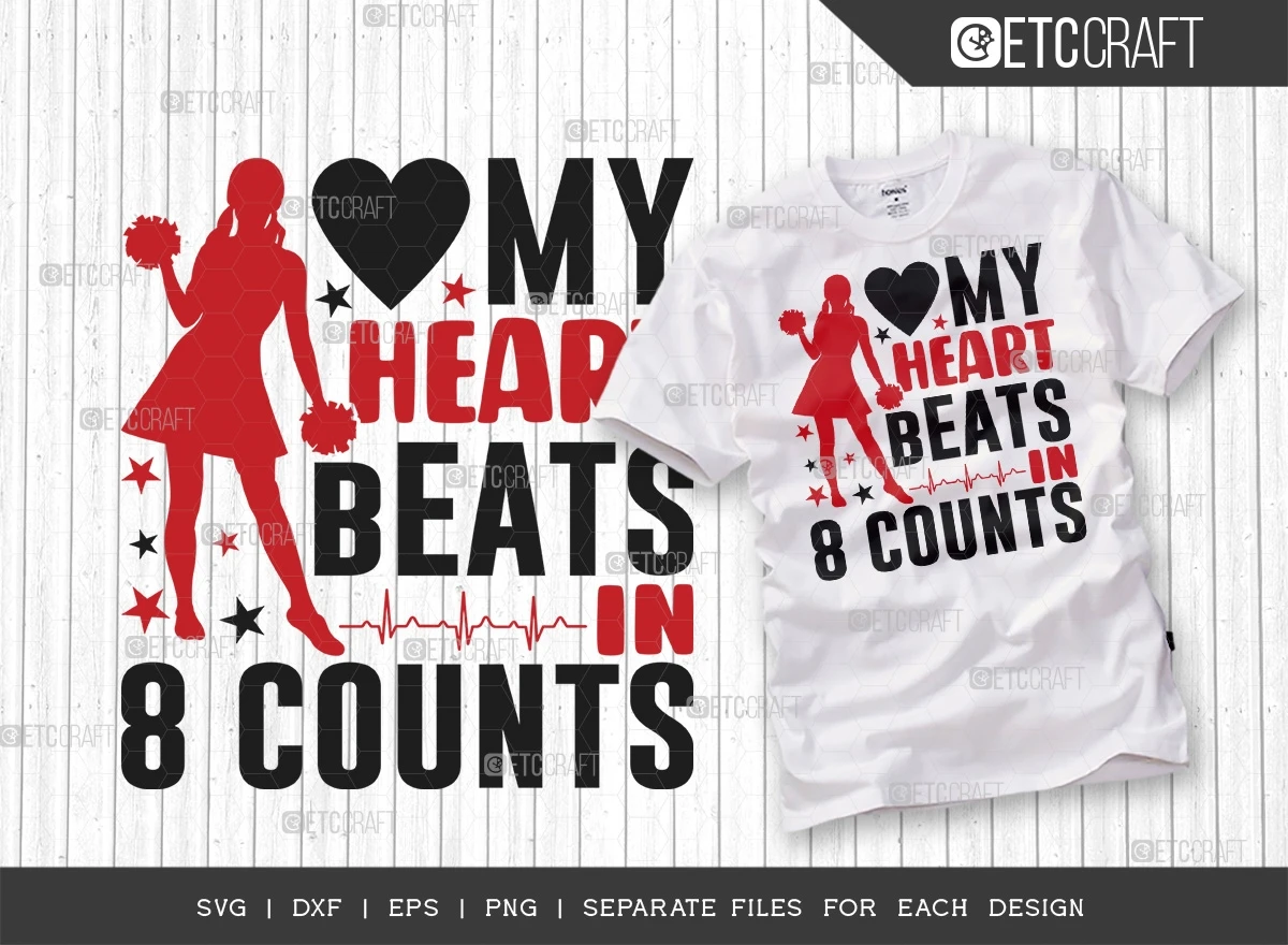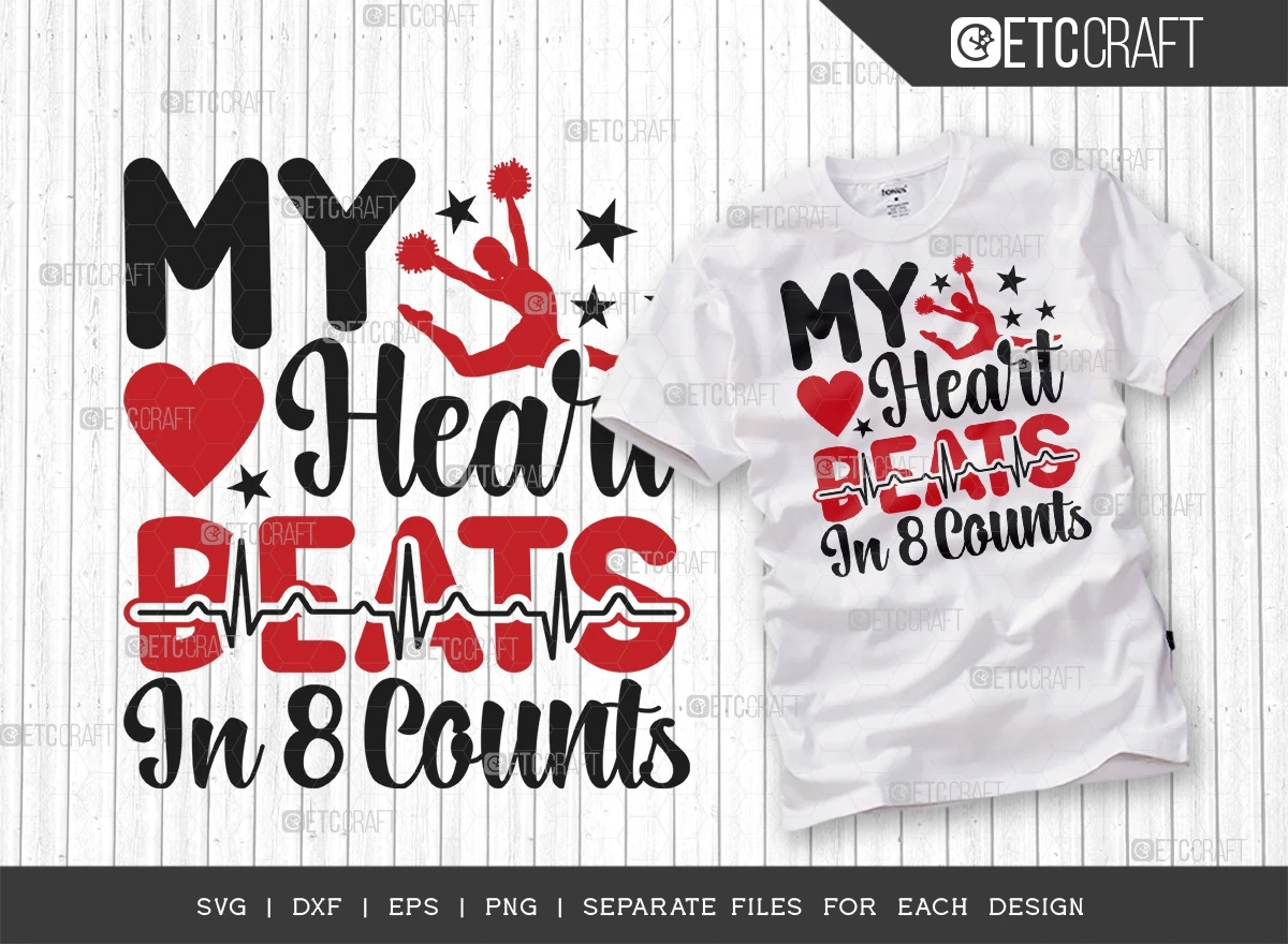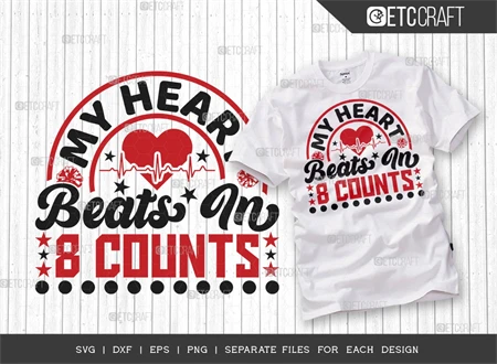 Introducing the "My Heart Beats In 8 Counts SVG Bundle" - the perfect t-shirt design for cheerleaders and cheer enthusiasts. With its captivating design and versatile uses, this SVG bundle is a must-have for anyone passionate about cheerleading. Here are the reasons why you should consider purchasing this design: