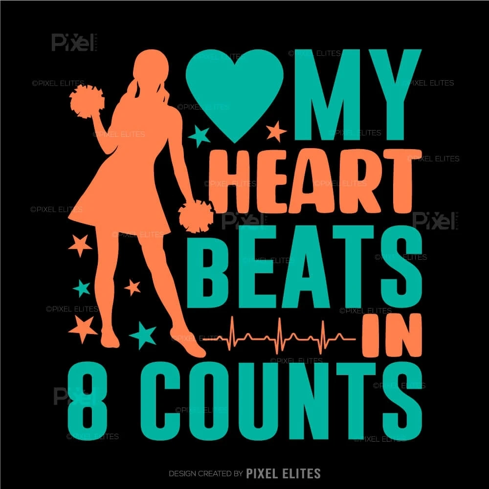 - Meaningful Cheerleading Message: My Heart Beats In 8 Counts reflects the precise timing and passion that define cheer routines, making it a perfect mantra for dedicated cheerleaders.