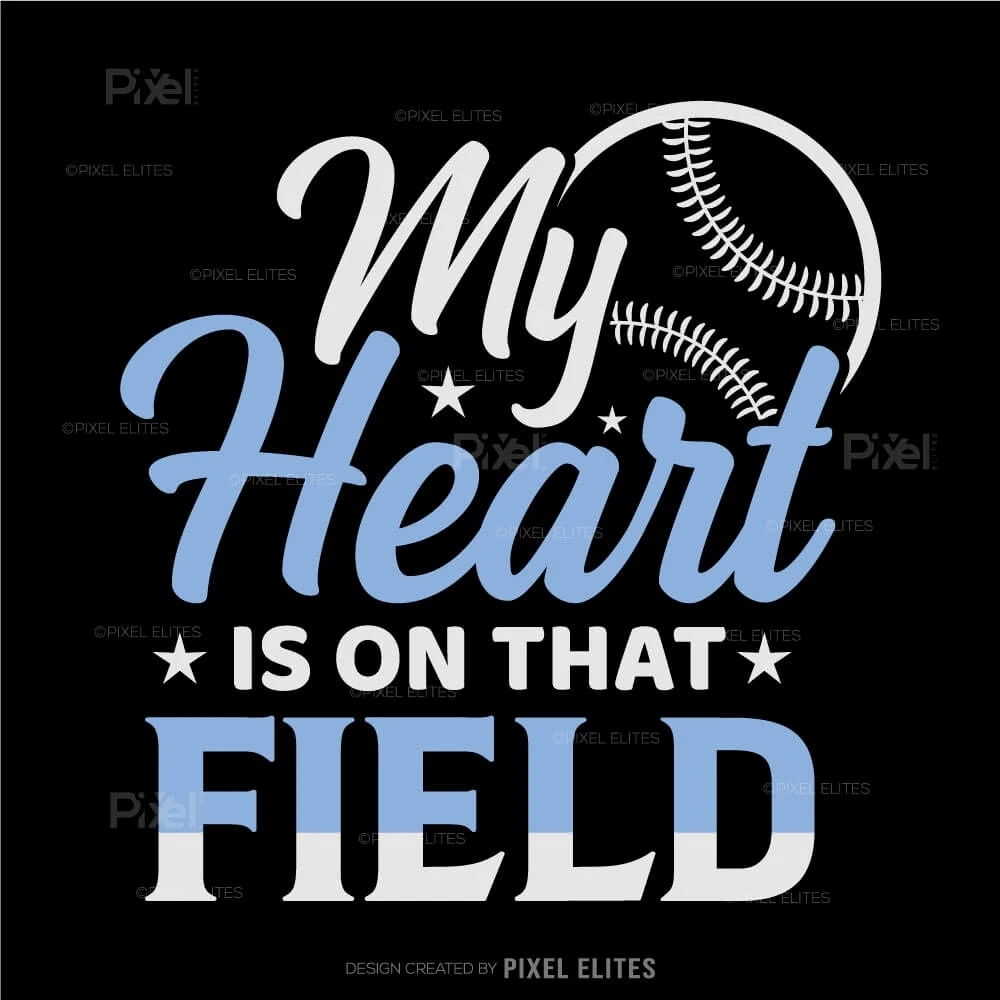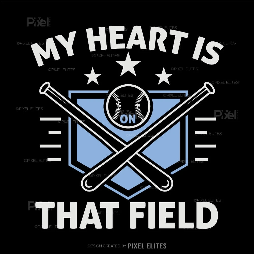 # My Heart Is on That Field SVG Cut Files Baseball T-Shirt Design, Player Gift, Quotes Cricut & Vinyl Decals Game Lover