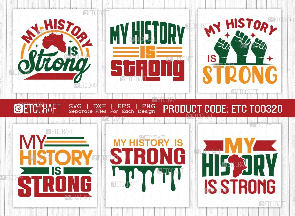 "My History Is Strong SVG Bundle," a powerful collection of SVG designs that pays tribute to the rich heritage of the African American community. Celebrate Black History Month, express your support for Black Lives Matter, and embrace the spirit of Black Power with these impactful and empowering SVGs. Perfect for anyone looking to make a bold statement with their apparel or craft projects, this bundle is a must-have for those passionate about equality, diversity, and the strength of their history.
