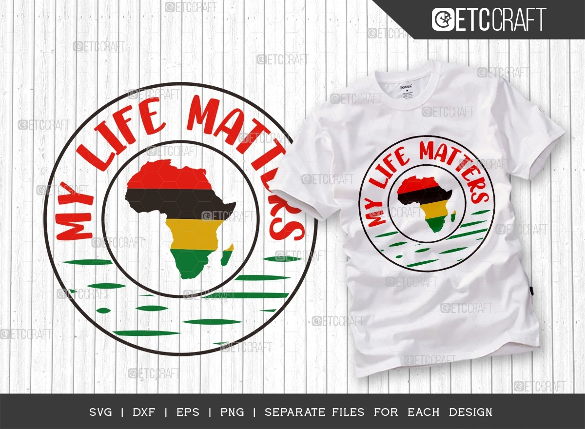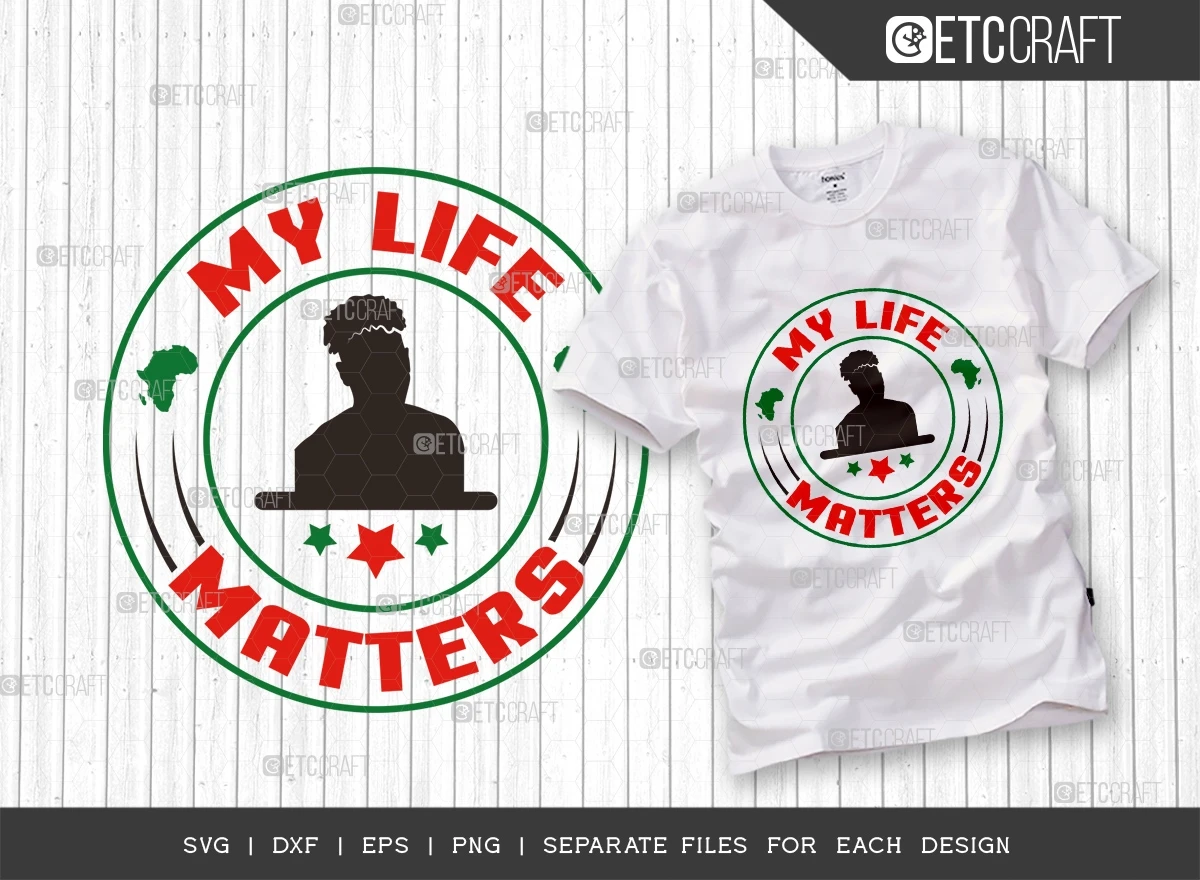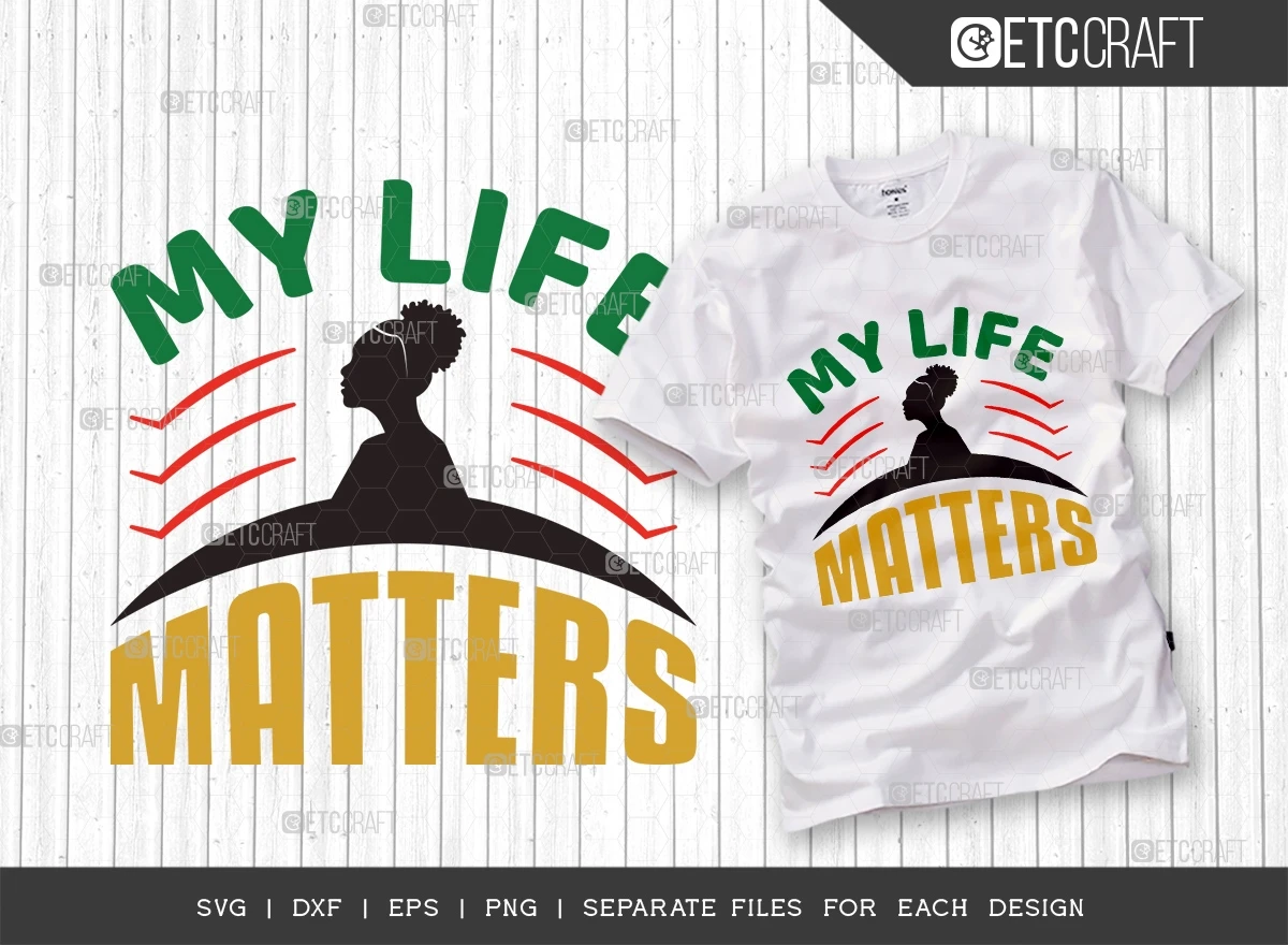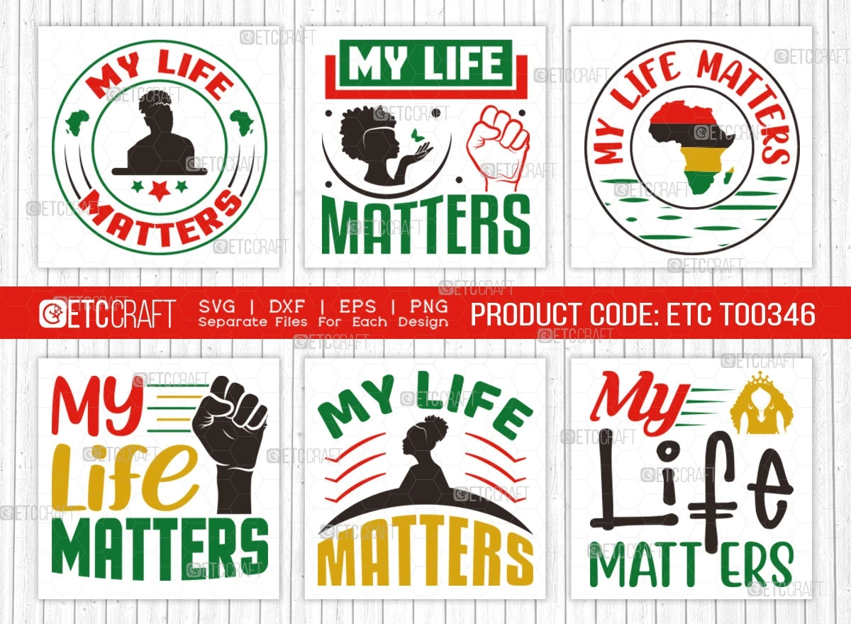 The "My Life Matters SVG Bundle" - Celebrate the beauty and pride of the Black community with this stunning collection of SVG designs! Whether you're looking to create eye-catching t-shirt designs, posters, or home decor, this bundle is perfect for expressing empowerment, history, and cultural significance.