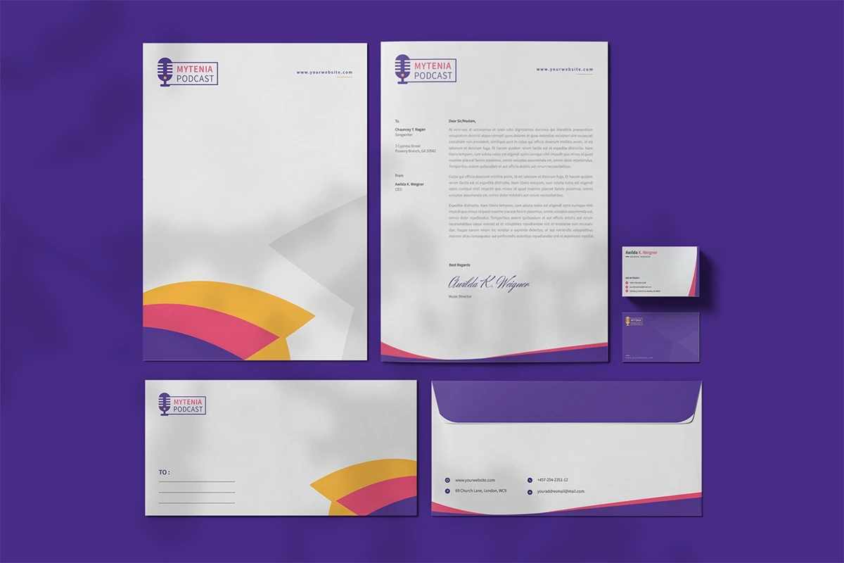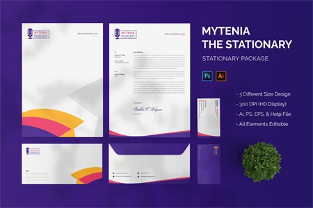 Mytenia Podcast - Stationary. This template is great for your business and this design will make your interested, elegant, and easily editable according to your needs. I hope you enjoy for this stationary.