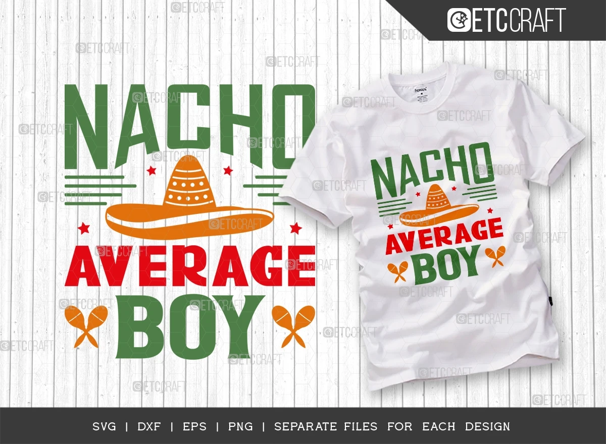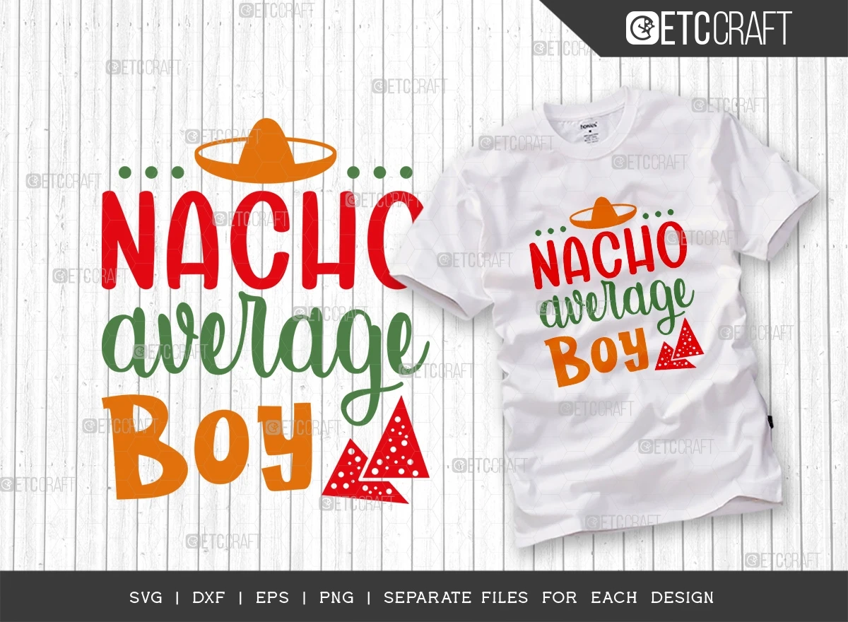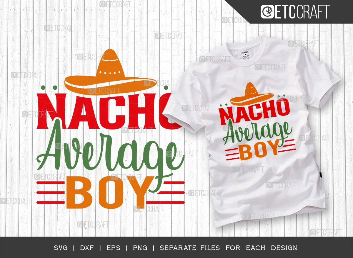 "Nacho Average Boy SVG Bundle" is an essential toolkit for anyone looking to infuse their designs with Mexican charm and Fiesta spirit. With its versatile uses, high-quality files, and captivating typography, this bundle will undoubtedly elevate your creative game. Don't miss this opportunity to take your designs to new heights and become the life of the Fiesta!