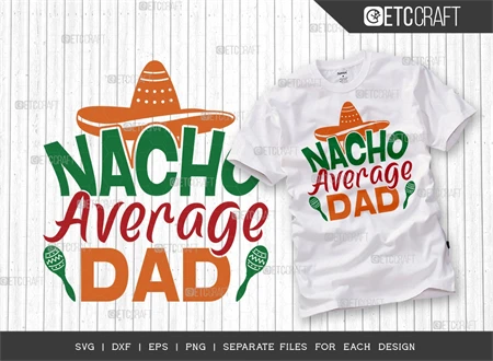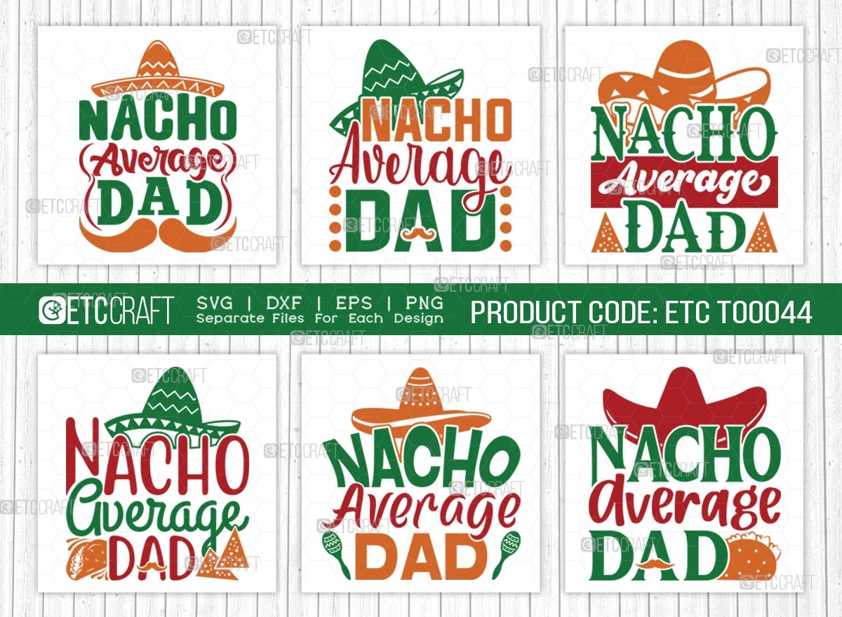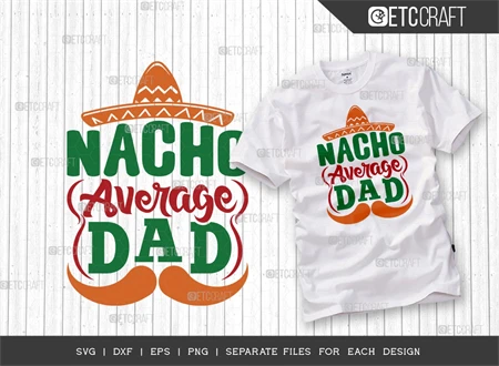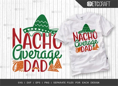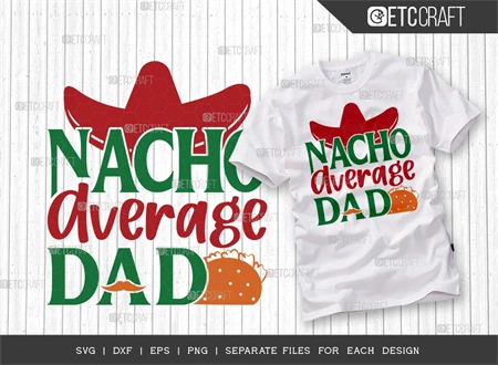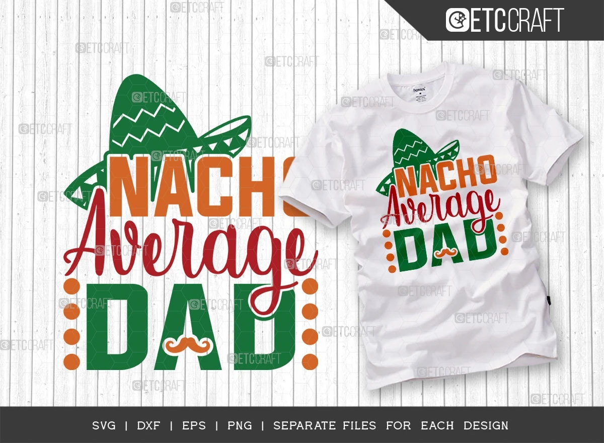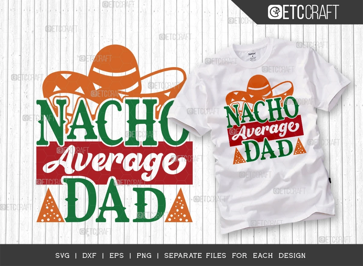 The Nacho Average Dad SVG Bundle T-Shirt Design - a perfect choice for those seeking a unique and eye-catching design that celebrates the awesomeness of dads! This product description will highlight why you should consider purchasing this design, as well as its various uses and benefits.