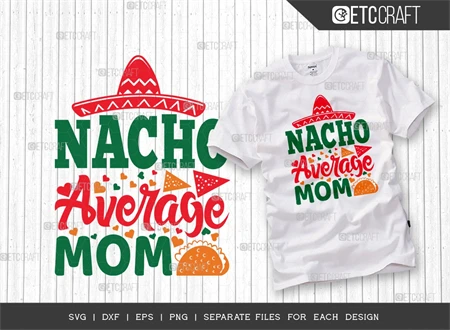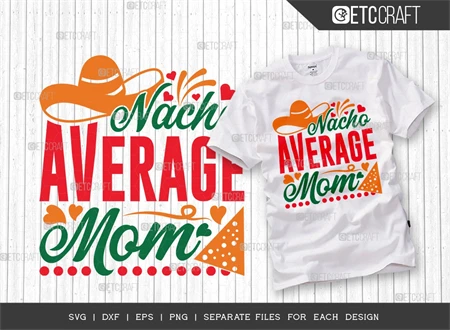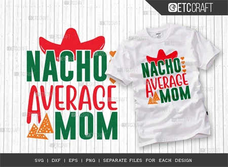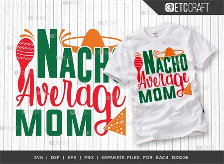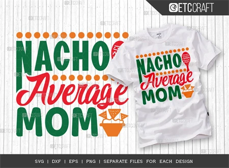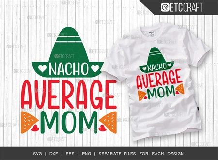 Versatile Compatibility: The Nacho Average Mom SVG Bundle is compatible with various t-shirt styles and colors. Whether you prefer a classic crew neck, a cozy V-neck, or a stylish tank top, this design can be easily applied to create the perfect look that suits your personal style.