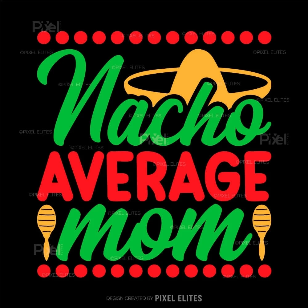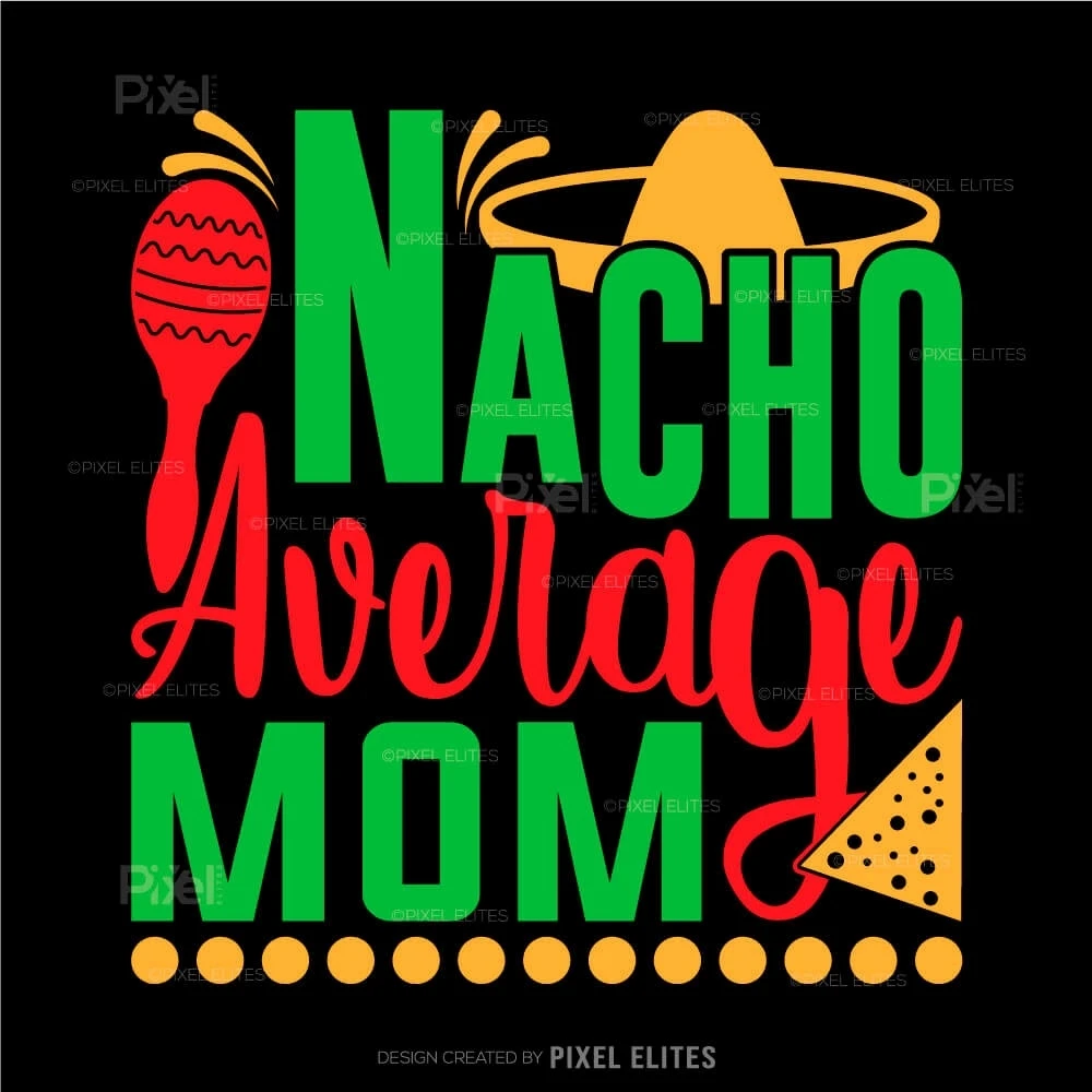 Celebrate the vibrant spirit of Cinco De Mayo with our Nacho Average Mom SVG Design! This fun and playful design is perfect for creating unique apparel and decorations, making it an essential addition for moms who want to join in on the fiesta festivities while showcasing their fun-loving personality.