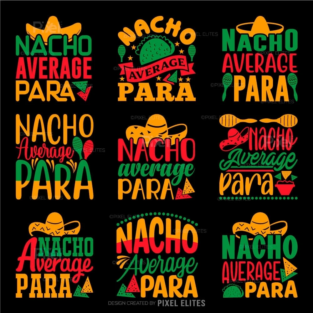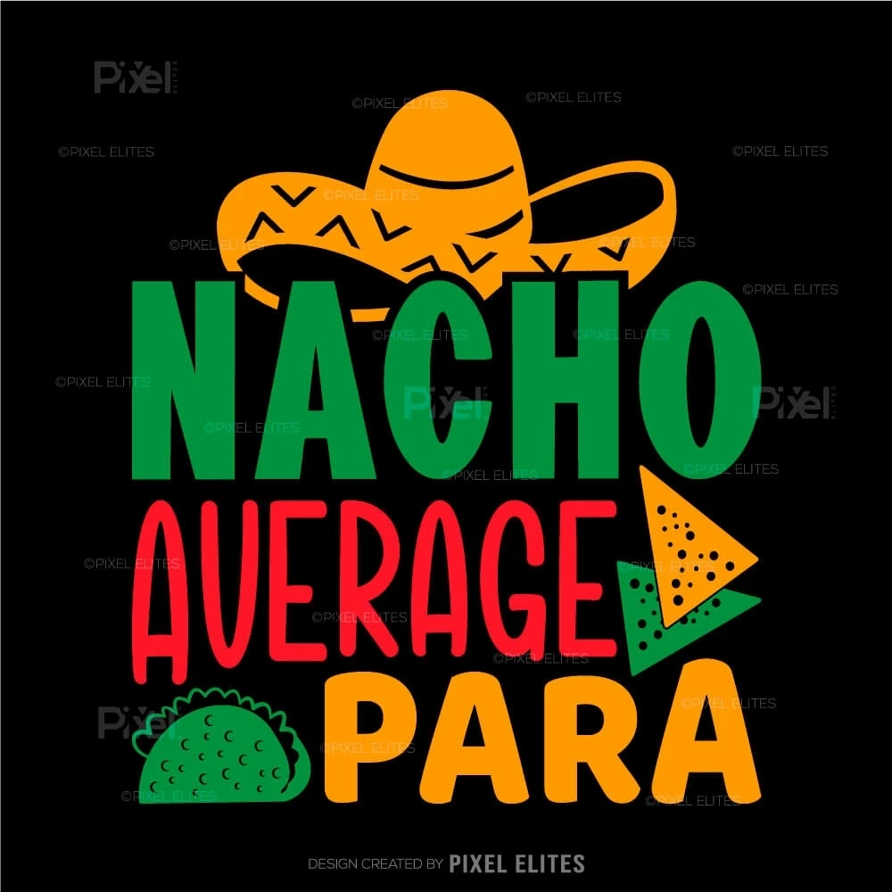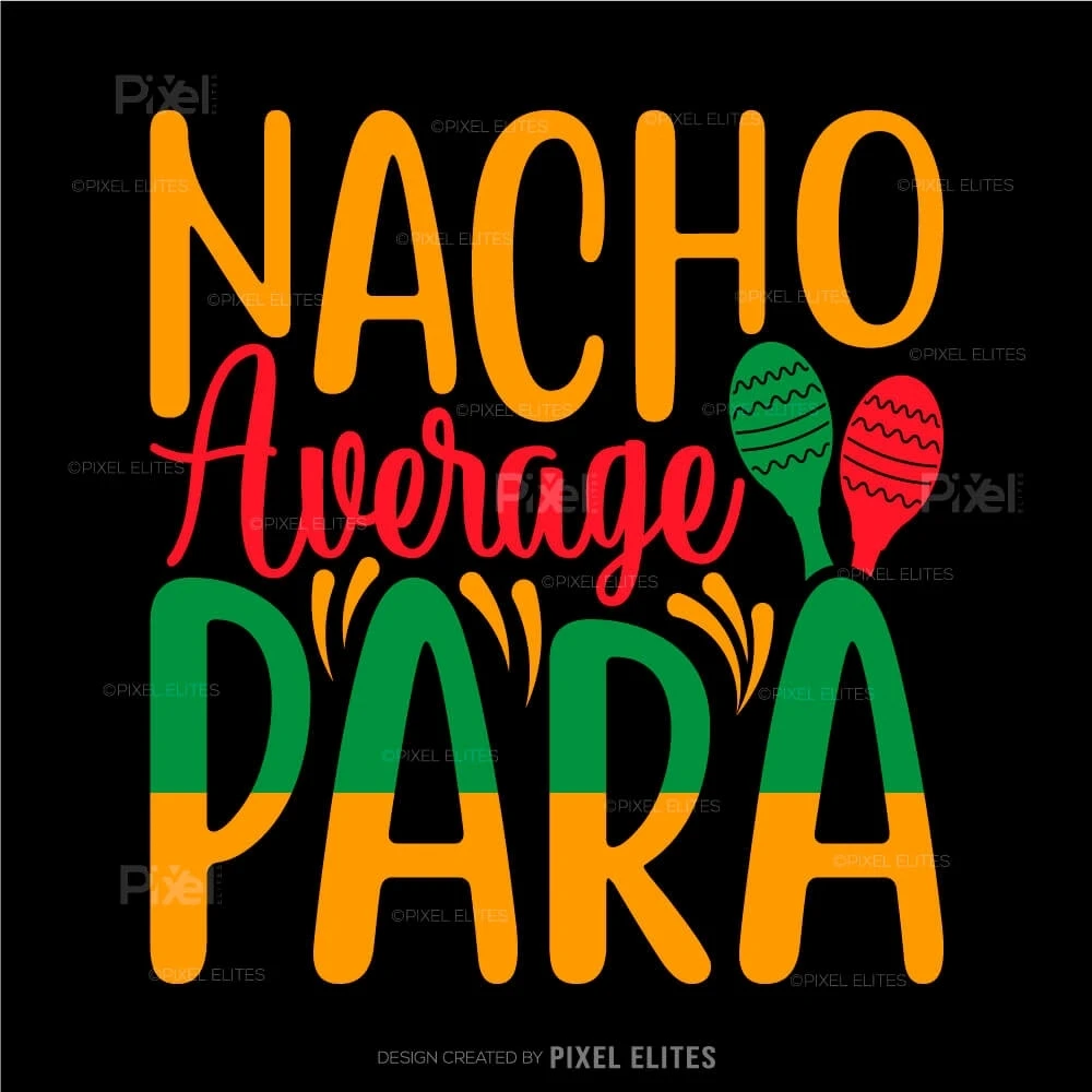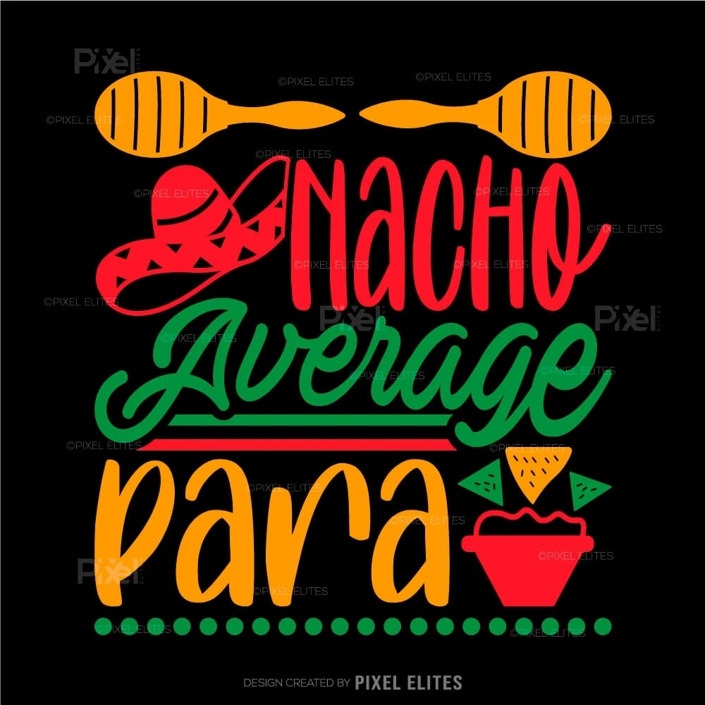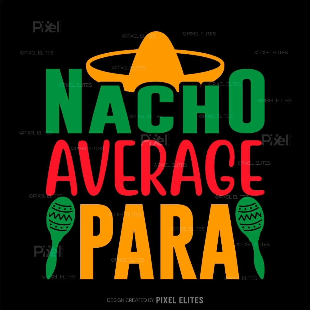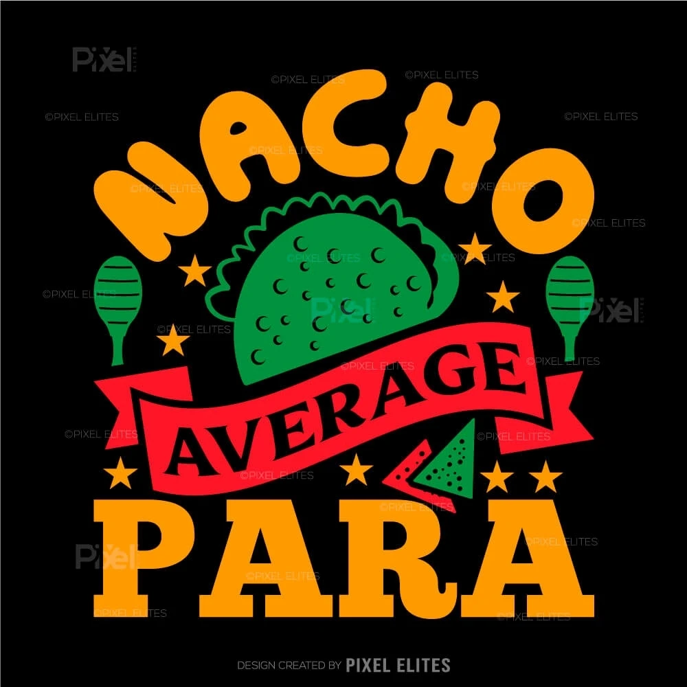 Get ready to celebrate in style with our Nacho Average Para SVG Design! This fun and vibrant design is perfect for crafting unique apparel and decorations for your Cinco De Mayo festivities, making it a must-have for anyone looking to add a touch of humor to their celebrations.