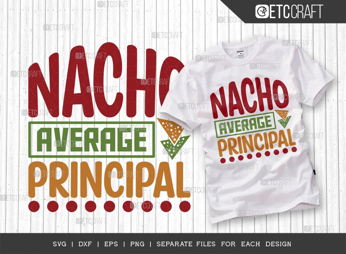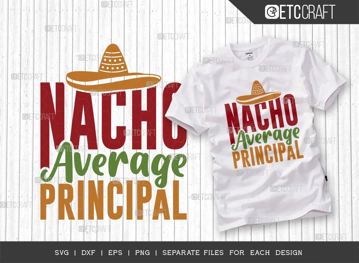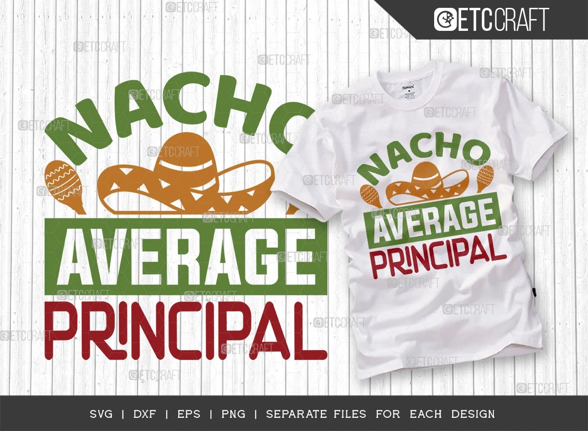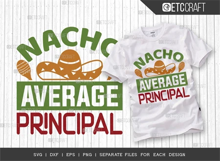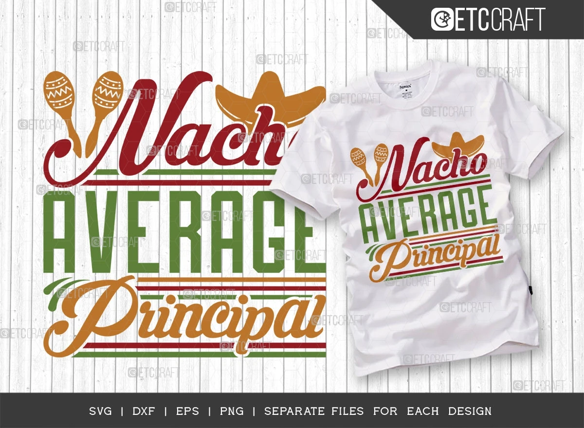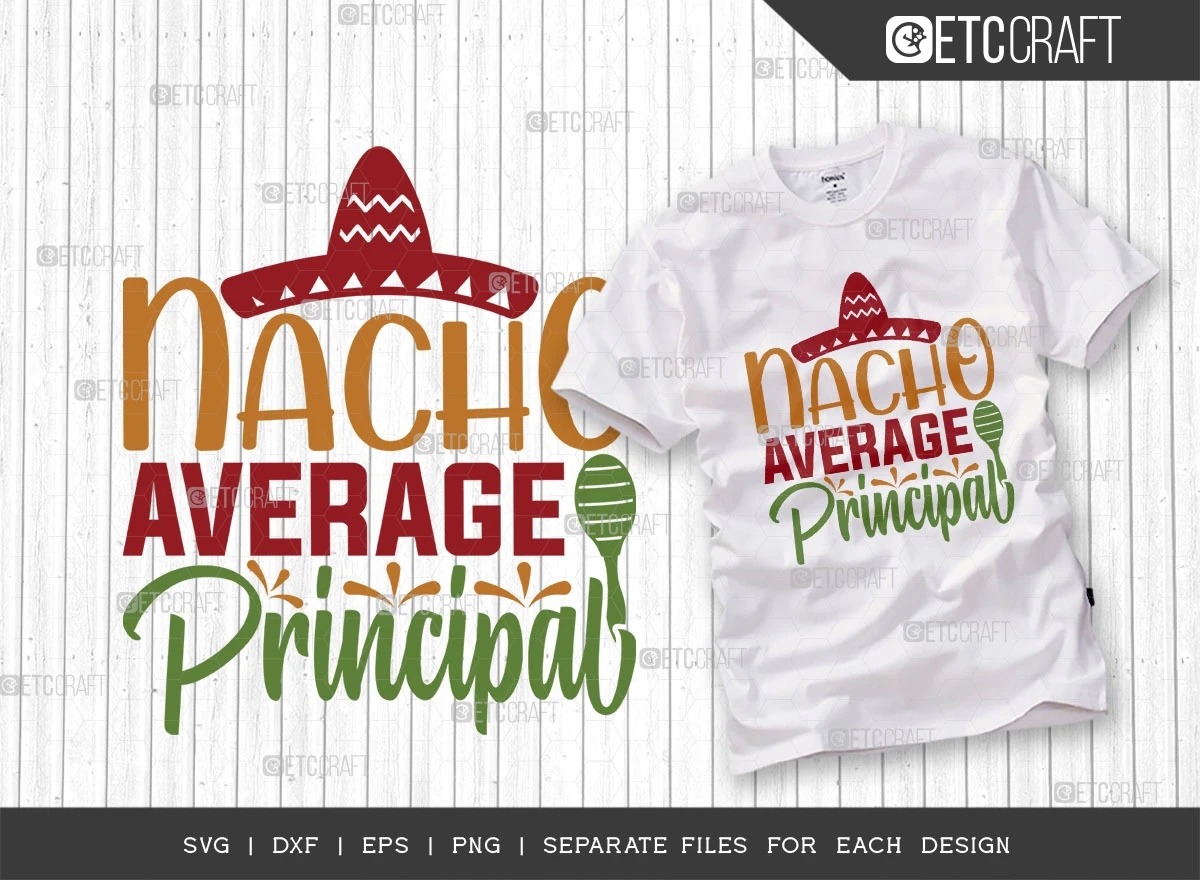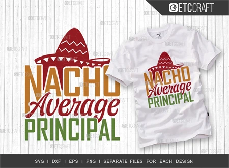 "Nacho Average Principal SVG Bundle" is a must-have collection for anyone seeking to infuse their designs with the vibrancy and energy of Cinco de Mayo and Fiesta celebrations. With its versatility, high-quality typography, and delightful elements, this bundle guarantees remarkable results for all your creative endeavors. So, grab your sombrero and get ready to elevate your designs to new heights of fiesta-fueled fun!