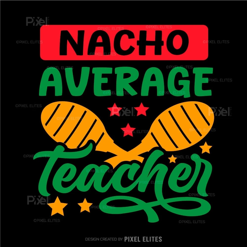 Celebrate the vibrant spirit of Cinco De Mayo with our Nacho Average Teacher SVG Design! This fun and energetic design is perfect for creating unique apparel and decorations, making it an essential addition for teachers who want to join in on the fiesta festivities while showcasing their love for teaching.