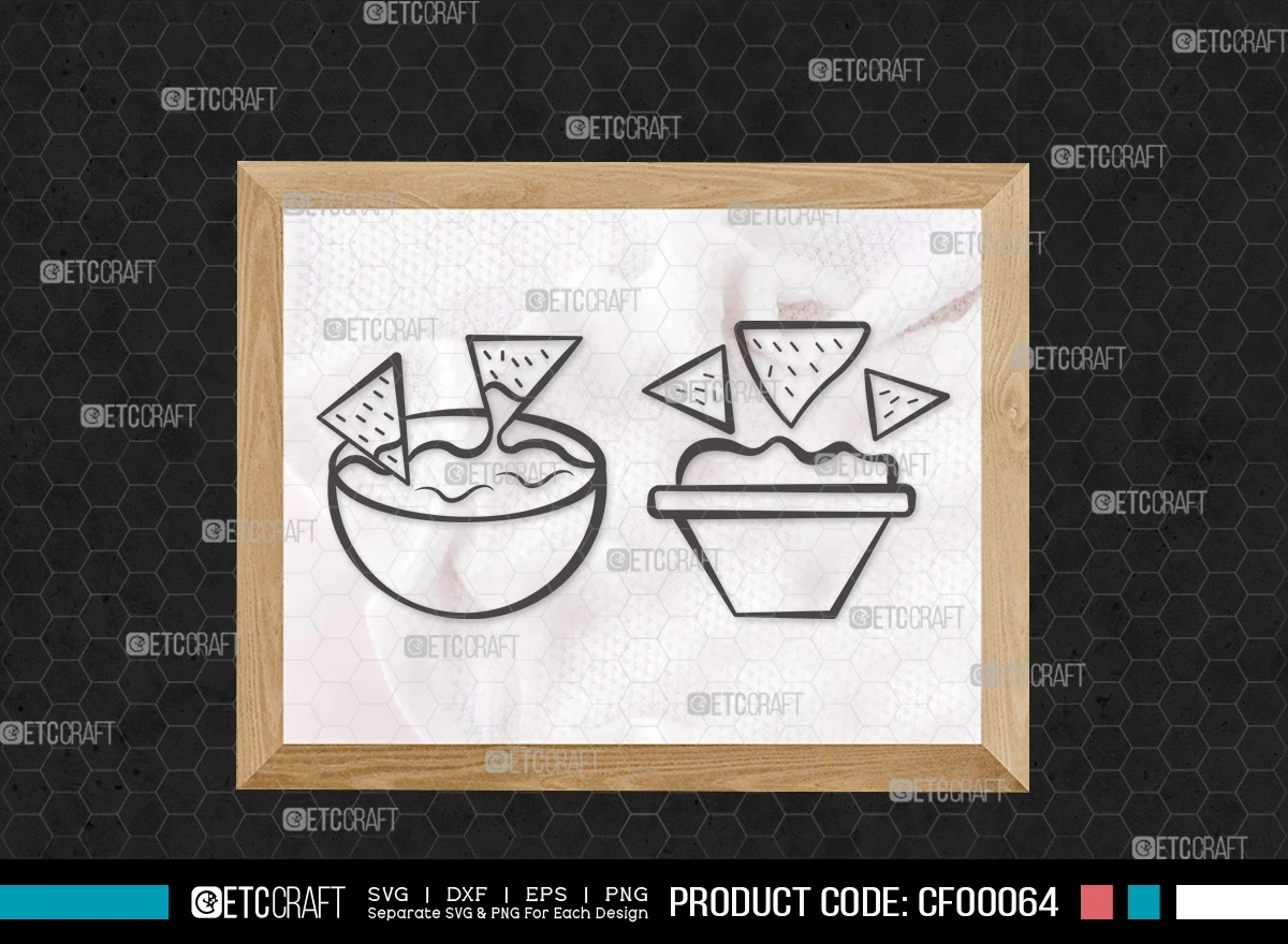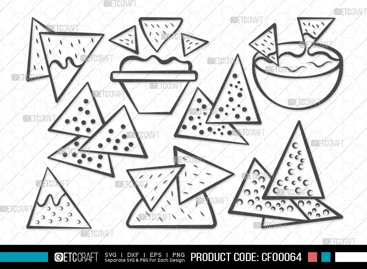 Spice up your designs with the essence of nachos using our "Nachos Outline Guacamole Tortilla Chips With Cheese" SVG cut file bundle. Let the nacho-lover in you shine through your creative projects!