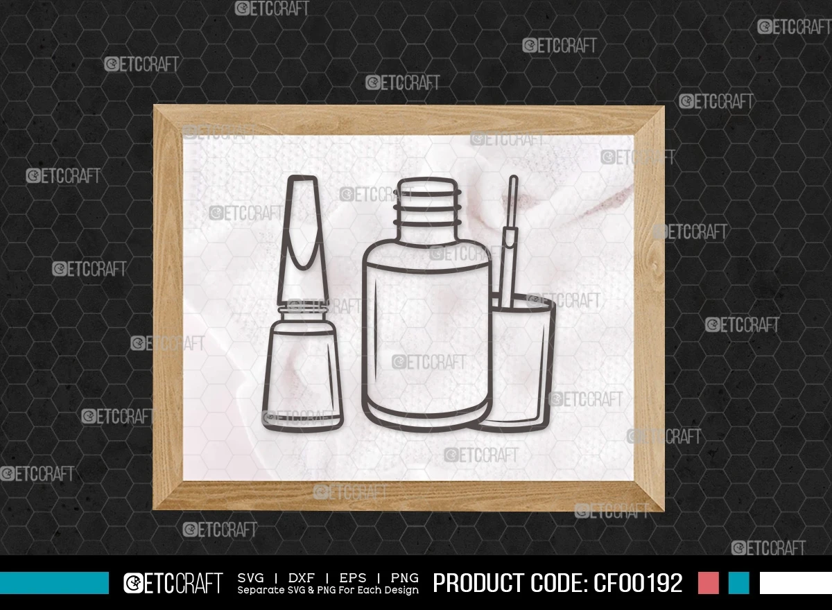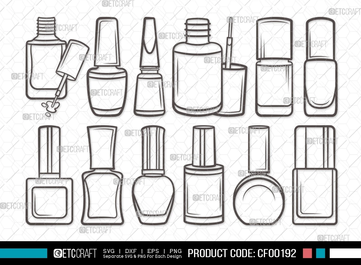 Elevate your nail fashion and beauty projects with our Nail Polish Outline Manicure Make Up Bottle SVG Cut File Bundle. Download now and infuse creativity into your nail-themed creations!