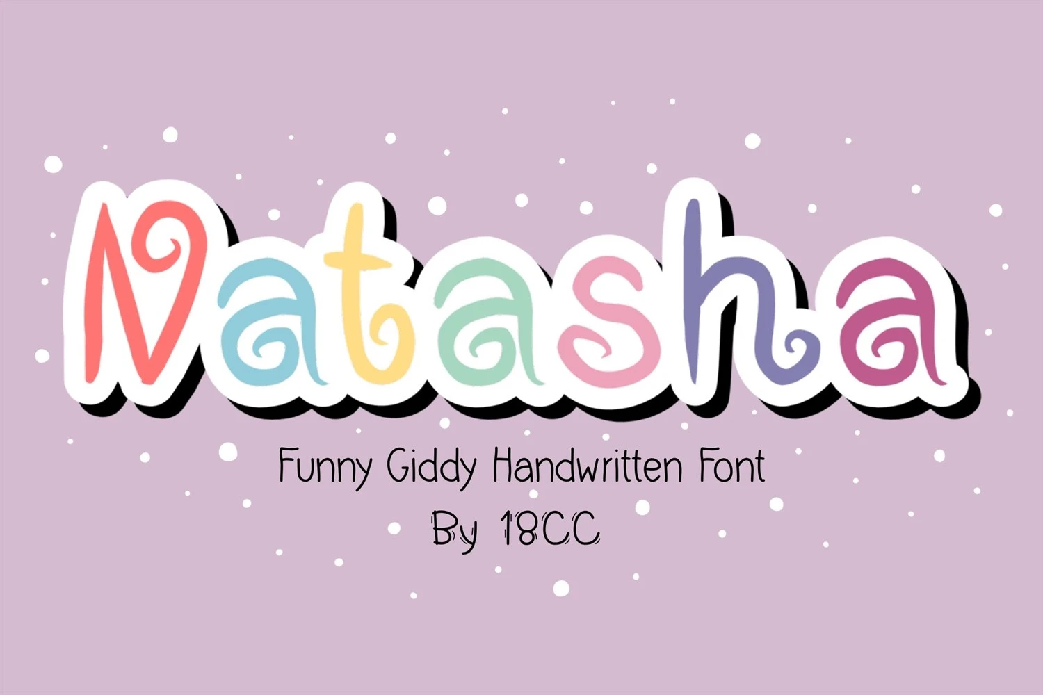 Natasha is a funny giddy handwritten font. It will be perfectfor branding, logos, lettering, Logotype, clothing, posters,magazines, packaging, shopping bags, t-shirts, book covers, photography, special events, and other design projects.