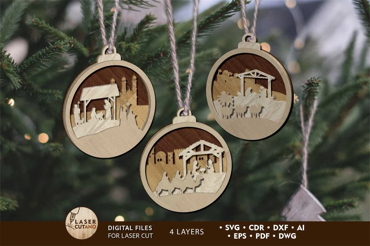 CHRISTMAS NATIVITY SCENE ORNAMENT Laser Cut File Svg New Year Laser Cut Designs. It is multilayer layout is an creative design for your ideas!