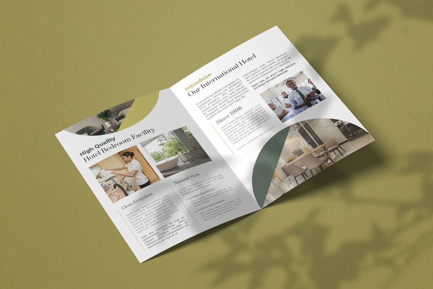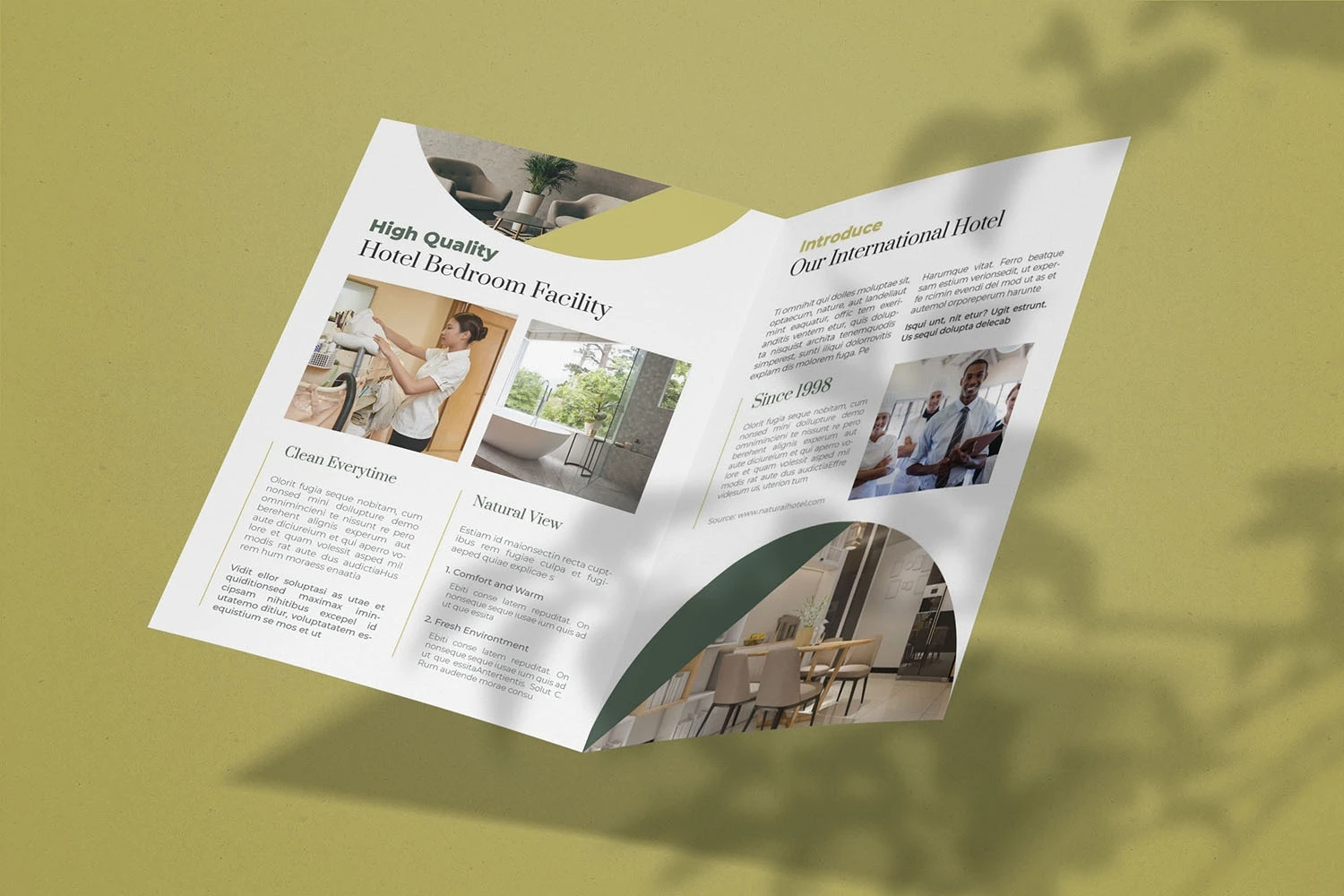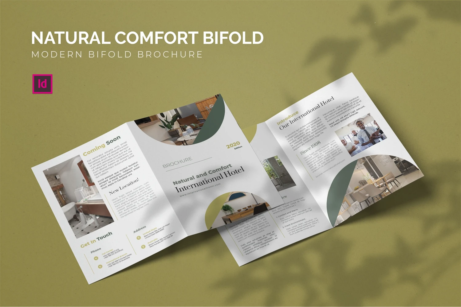 Natural and Comfort Hotel - Bifold Brochure We present this Bifold Brochure for you, simple and very elegant, and this Bifold Brochure is suitable for all types of your business, made with adobe inDesign, very easy to customize, Hope you Like it, dont forget to rate, Thanks.