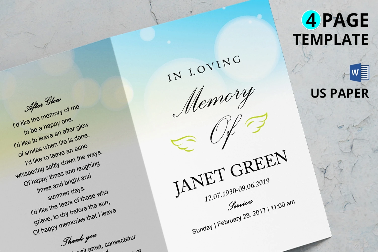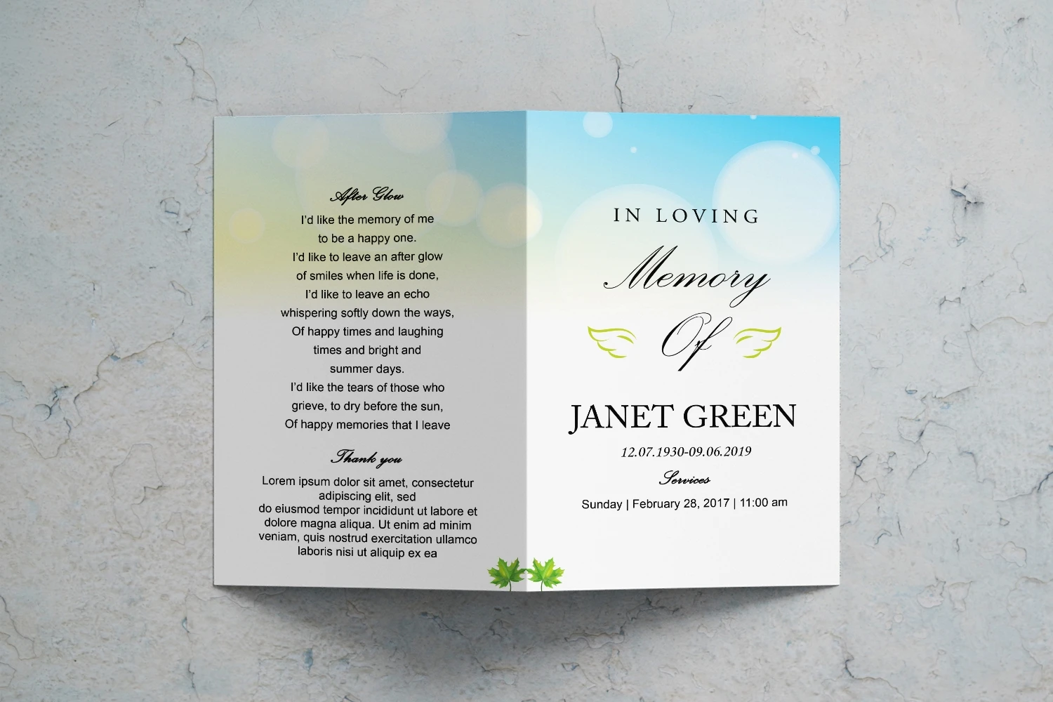 Beautiful Funeral Program template,easy to edit and print.