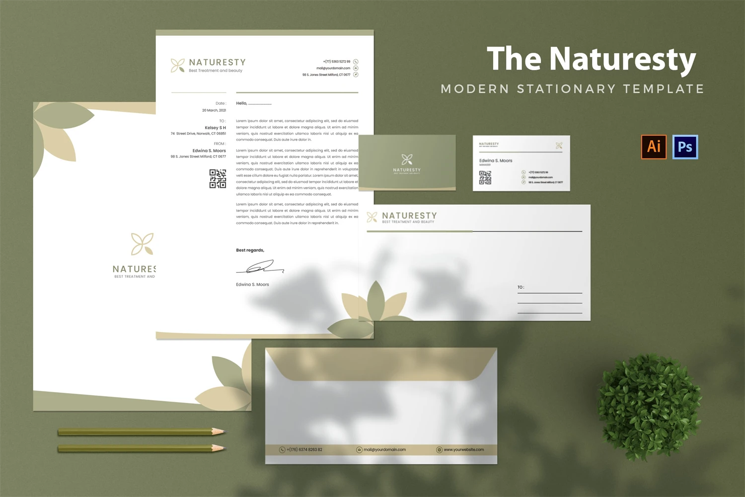 Naturesty - Stationary. This template is great for your business and this design will make your interested, elegant, and easily editable according to your needs. I hope you enjoy for this stationary.